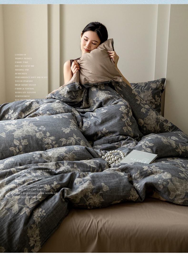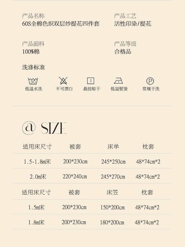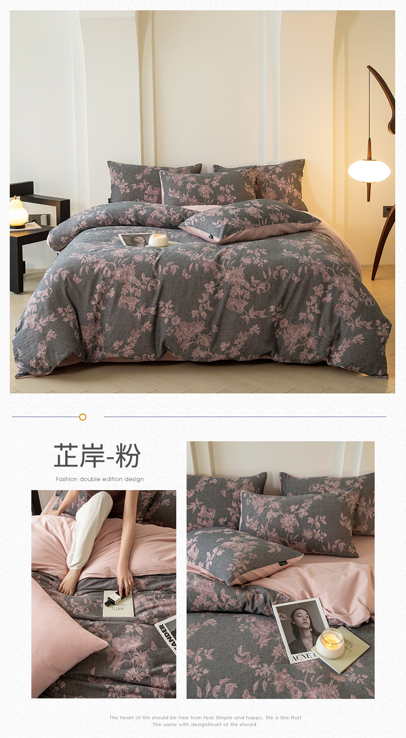 商品名称:大米家居 2024新款全棉60支双层纱色织提花四件套 芷岸-粉