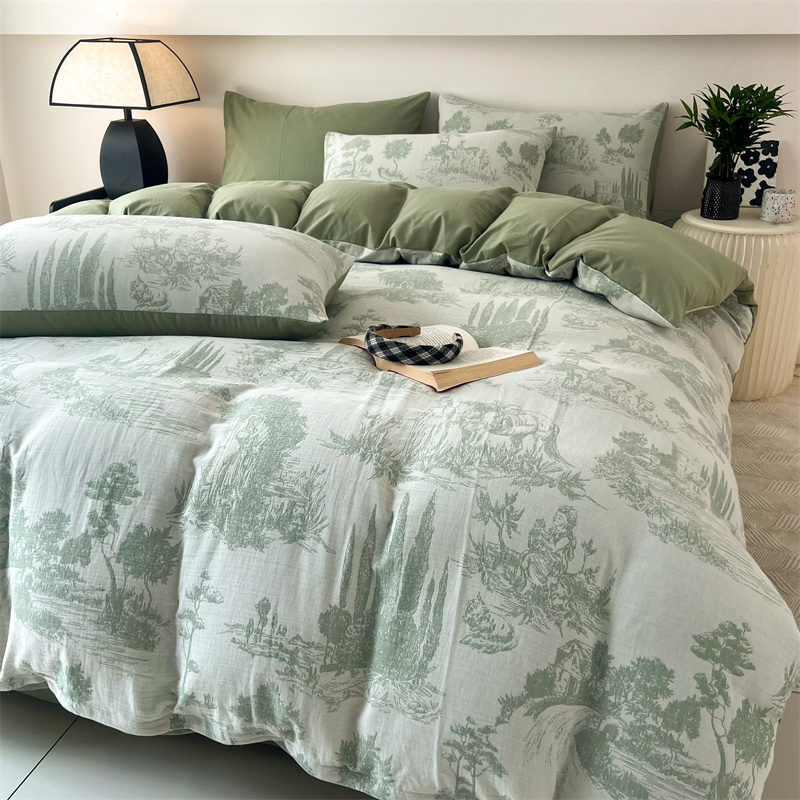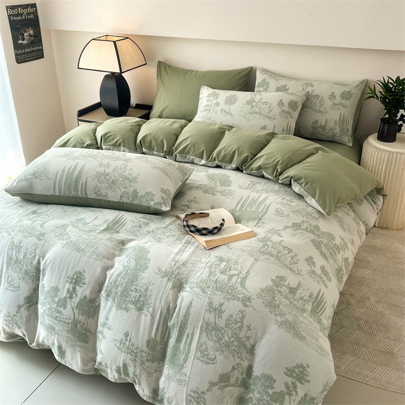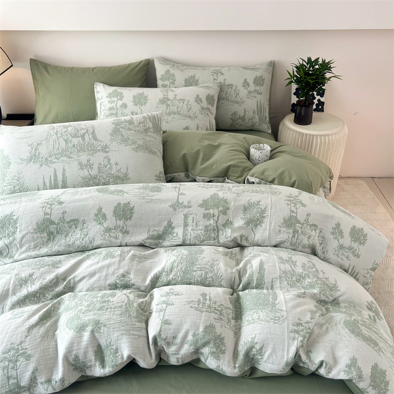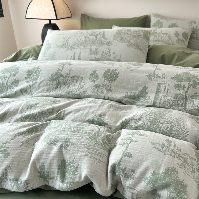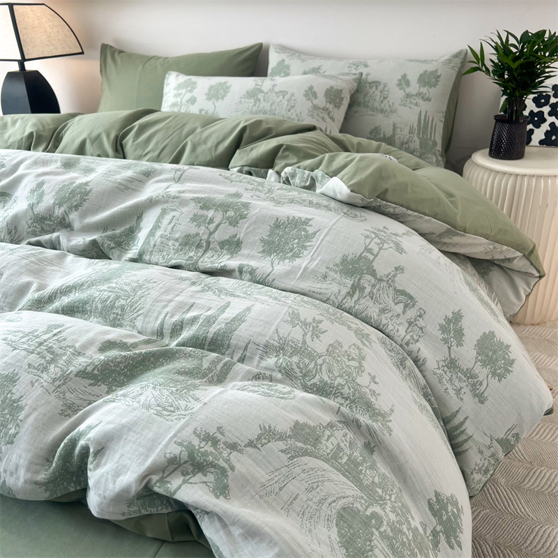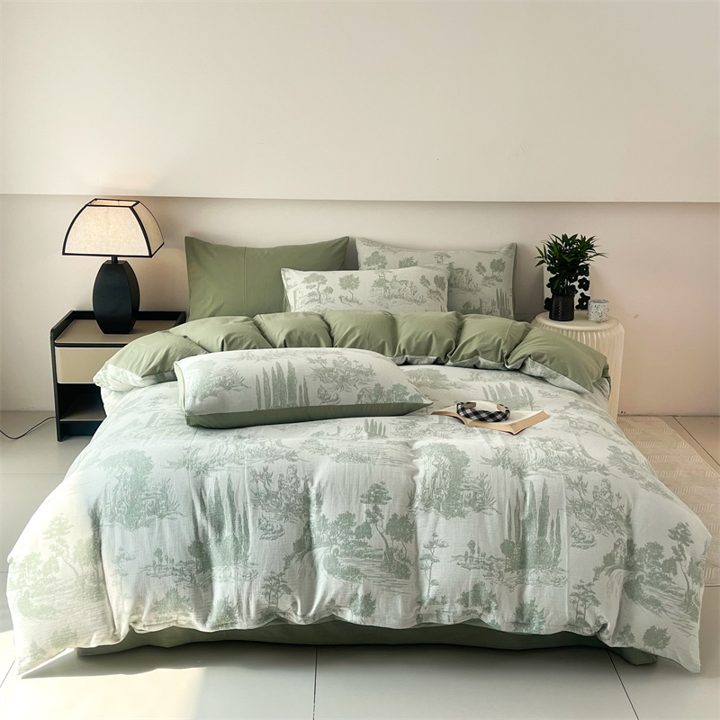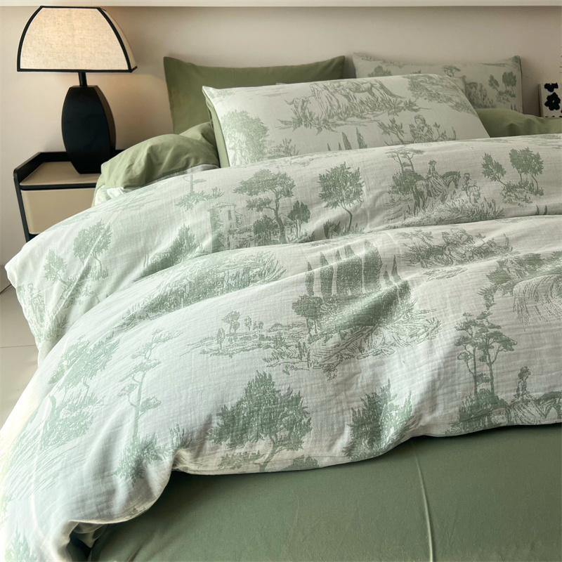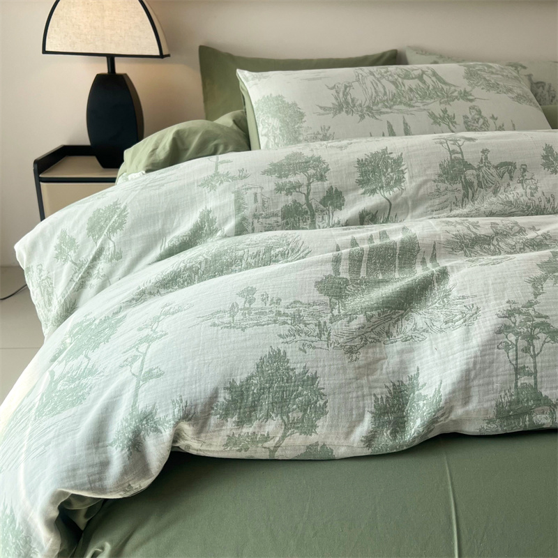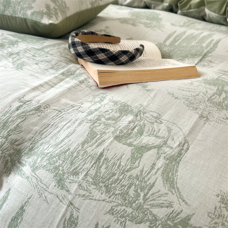 当前位置: 91家纺网 > 商品网购 > 床品套件 > 四件套 > 提花四件套 > HL原创 2024新款原创双层纱提花四件套 拾光-绿