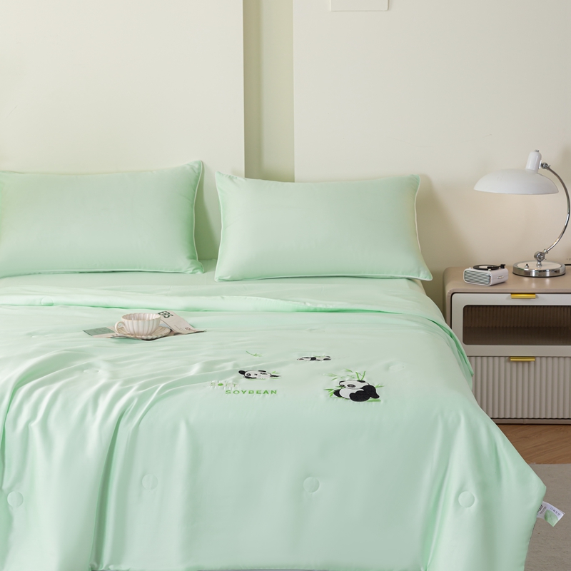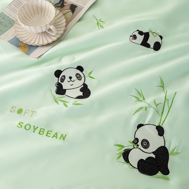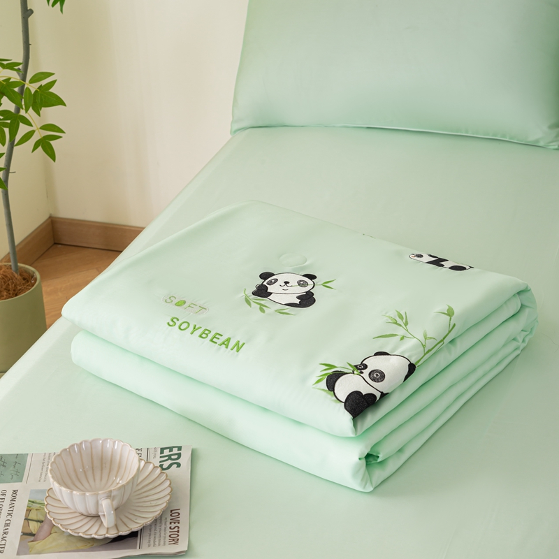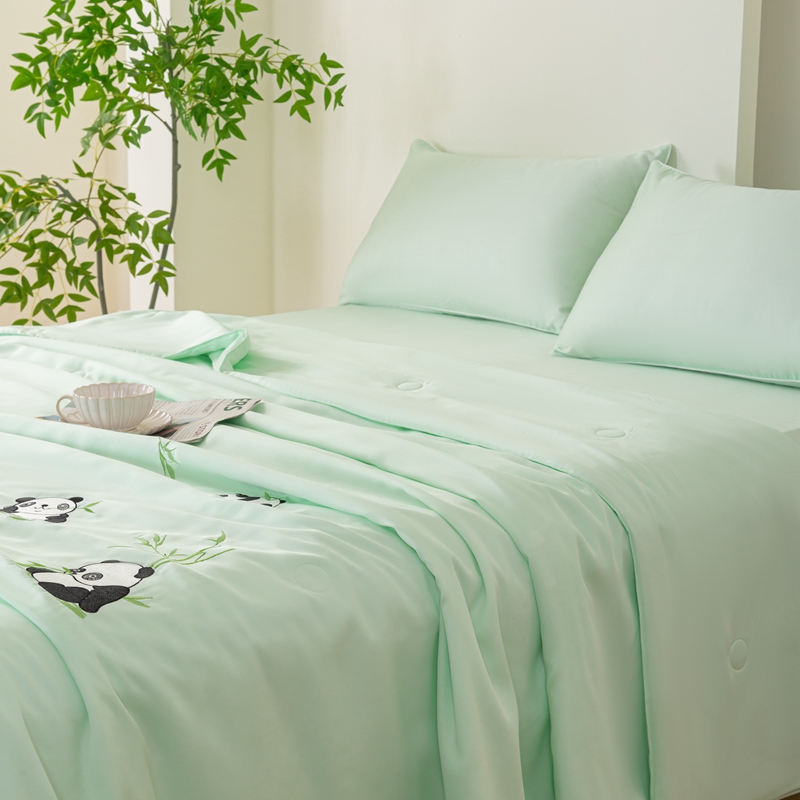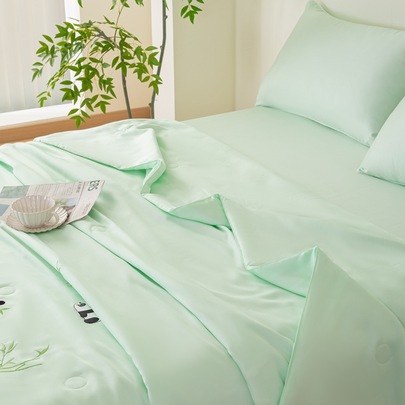 锦禾穗 2024新款40支天丝绣花夏被空调被-萌仔仔 青石绿