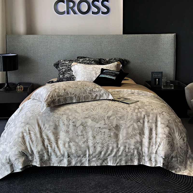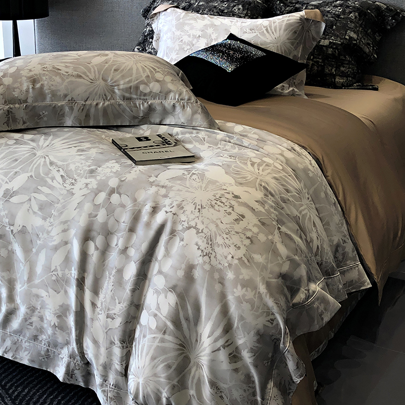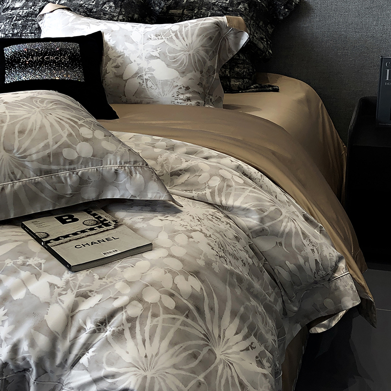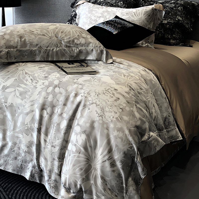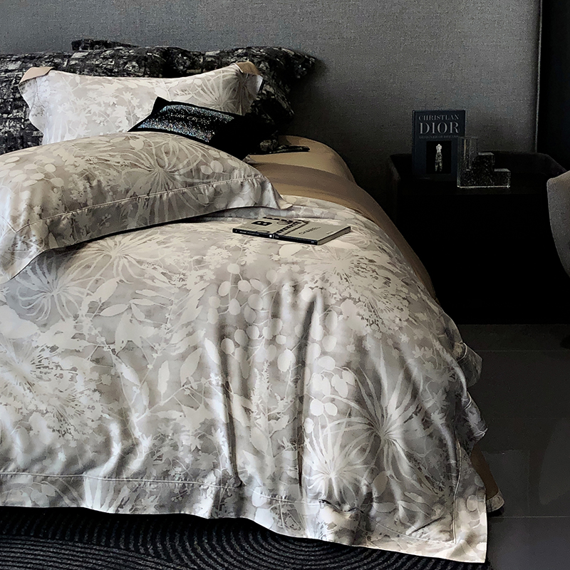 佳汐蓝 新款印花轻柔简雅奶丝四件套系列 繁花-浅沙米