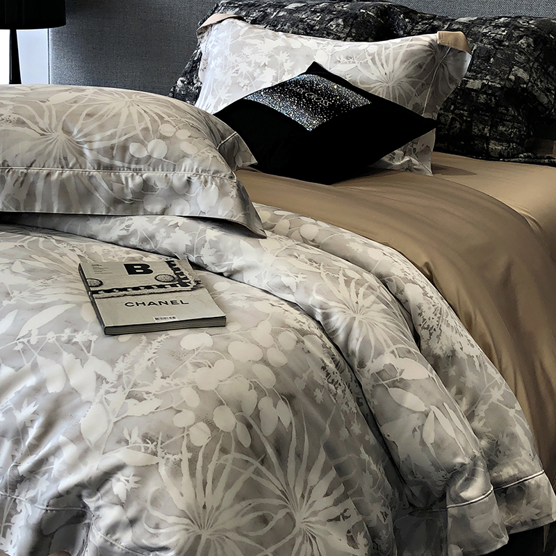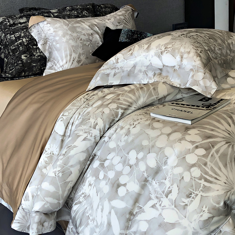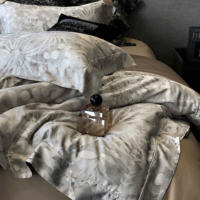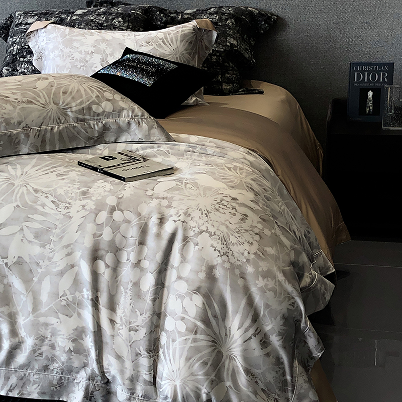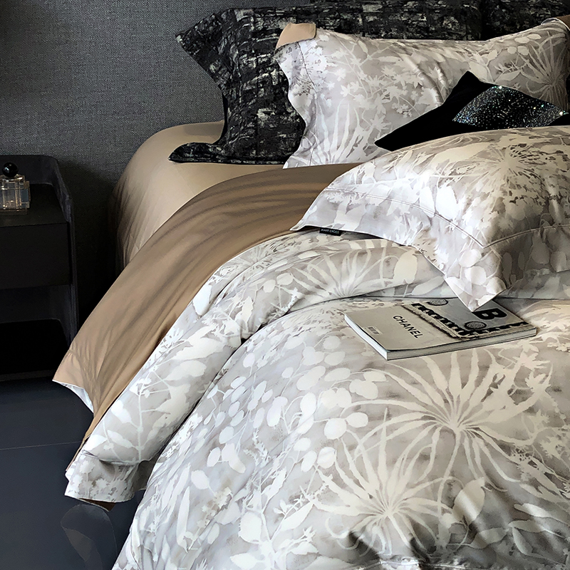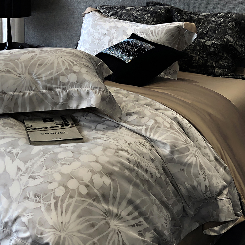 佳汐蓝 新款印花轻柔简雅奶丝四件套系列 繁花-浅沙米