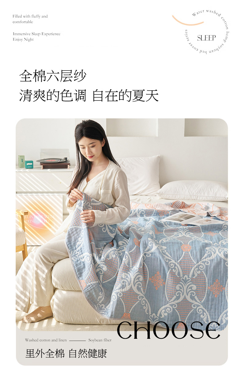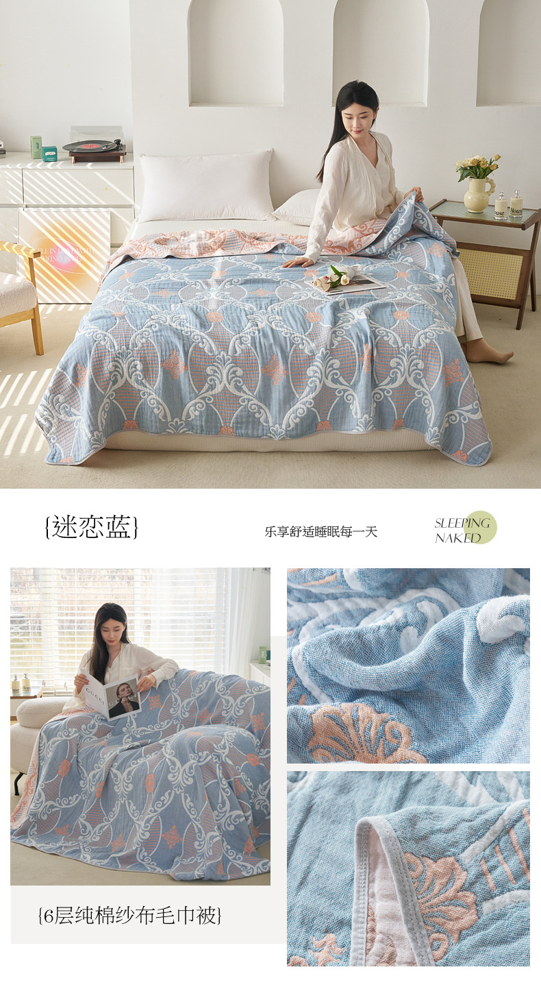 棠薇家纺 2025新款六层纯棉纱布毛巾被水洗工艺不缩水 迷恋蓝