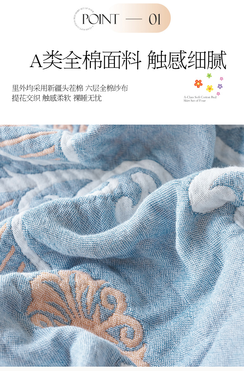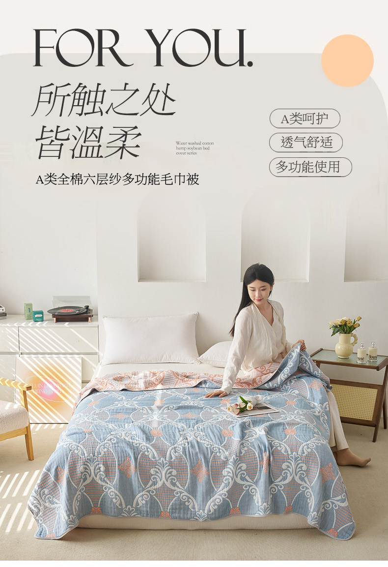 商品名称:棠薇家纺 2025新款六层纯棉纱布毛巾被水洗工艺不缩水 迷恋蓝