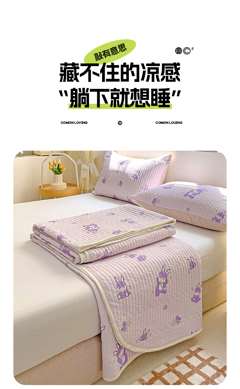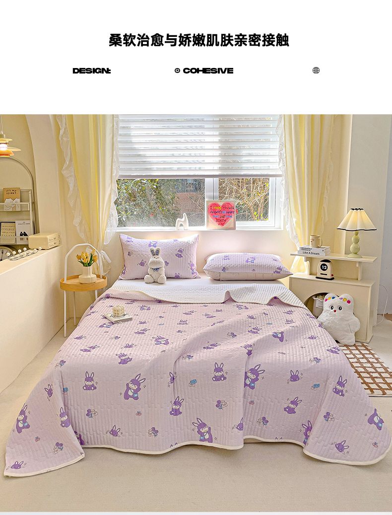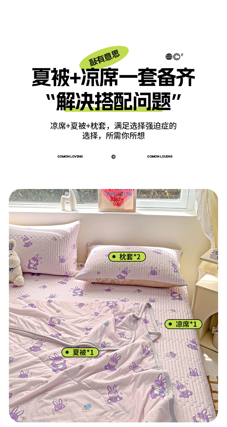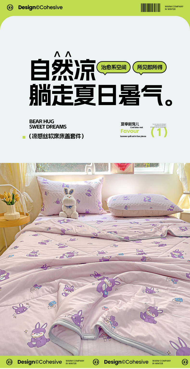 • 91家纺网 家纺一手货源 找家纺 澳梵家居 2024新款凉感丝软席软凉席床盖夏被四件套件 调皮兔