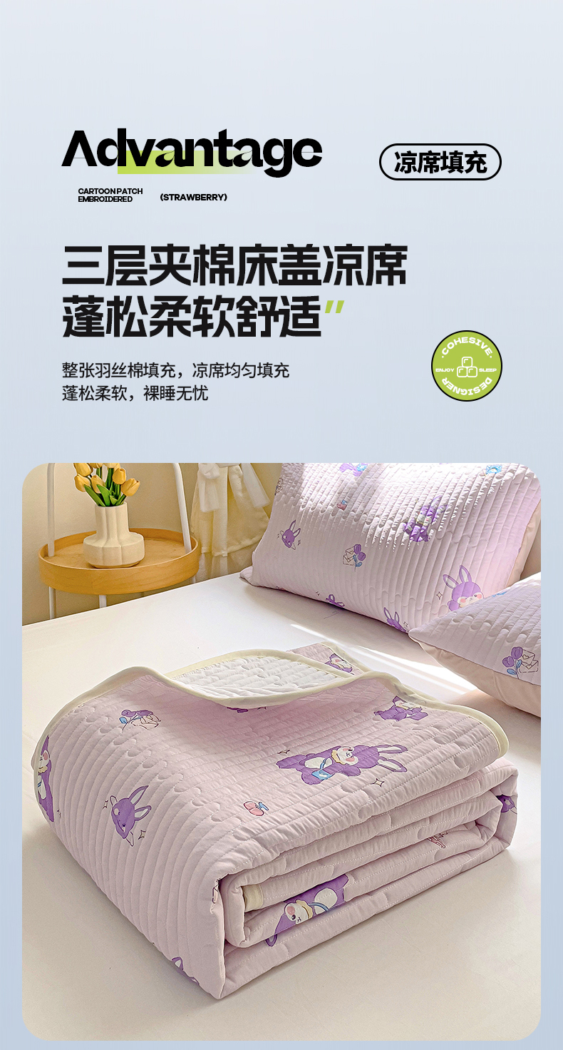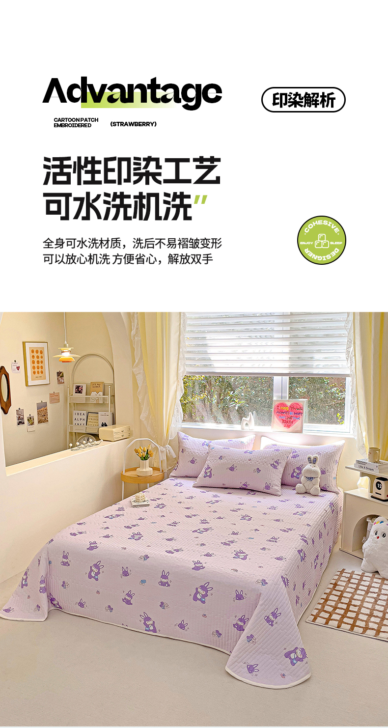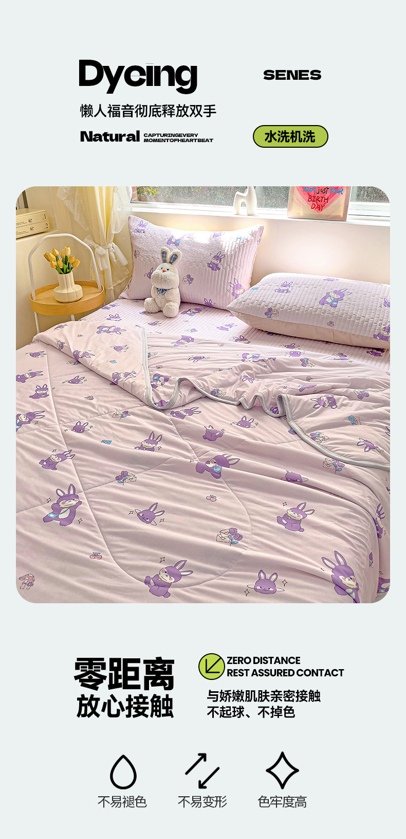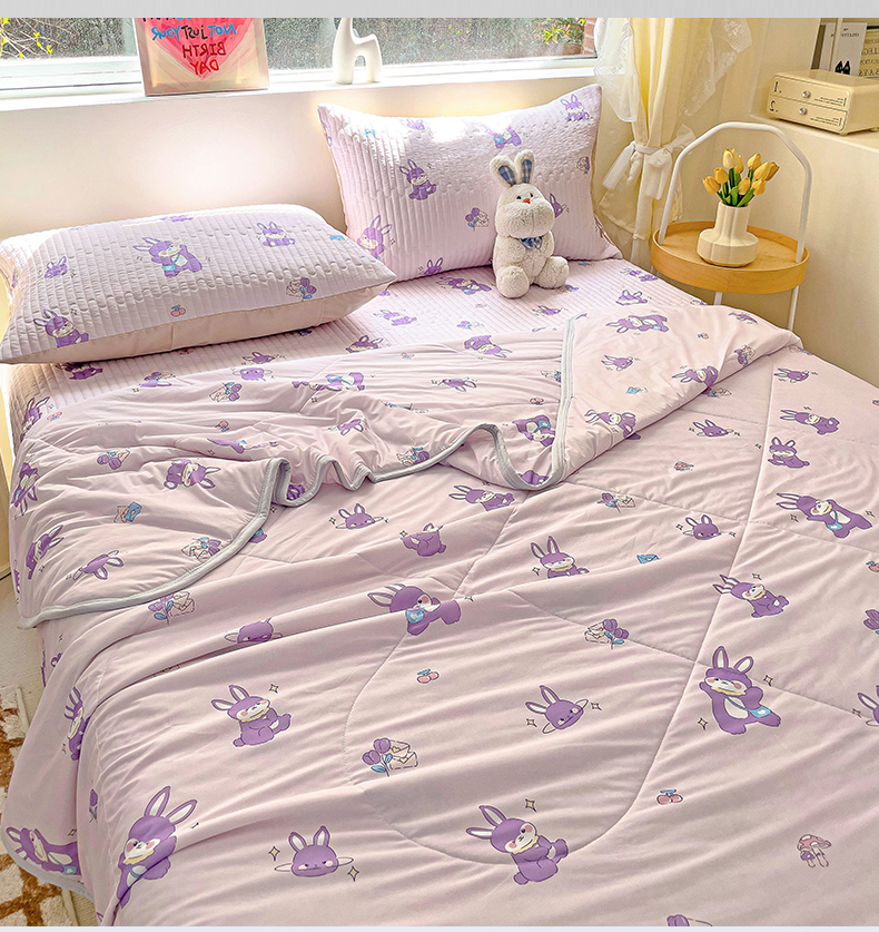 • 91家纺网 家纺一手货源 找家纺 澳梵家居 2024新款凉感丝软席软凉席床盖夏被四件套件 调皮兔