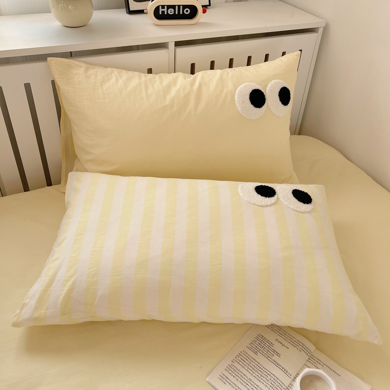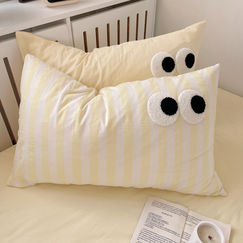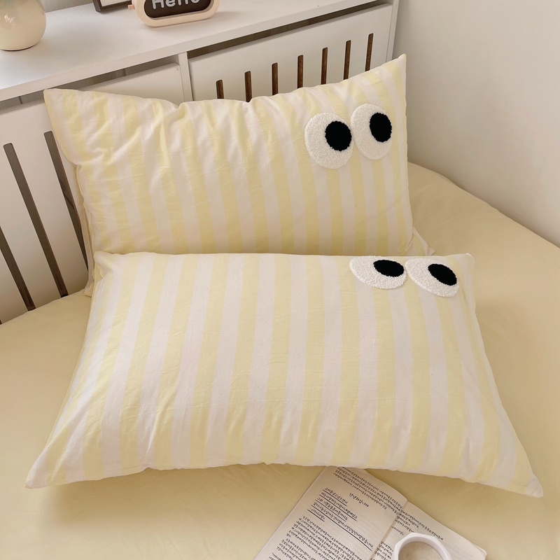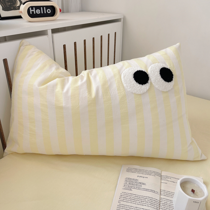 商品名称:丽涵家纺 2024新款全棉色织水洗棉单品枕套-毛巾绣大眼系列 48*74cm枕套/只 ins混搭-宽条黄