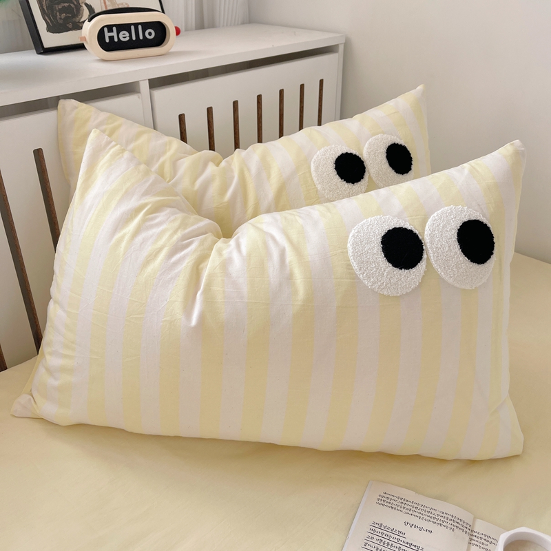丽涵家纺 2024新款全棉色织水洗棉单品枕套-毛巾绣大眼系列 48*74cm枕套/只 ins混搭-宽条黄