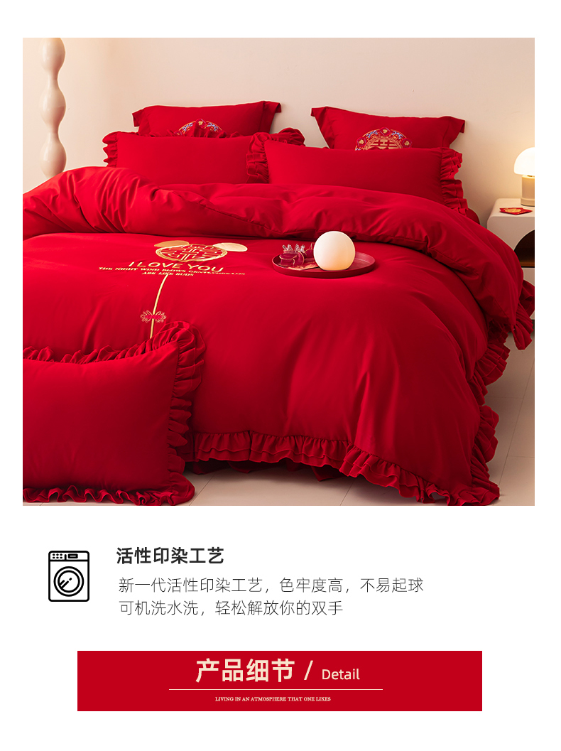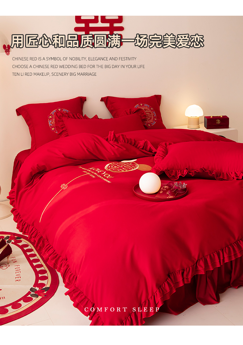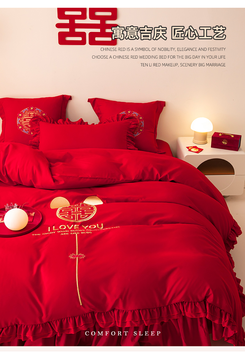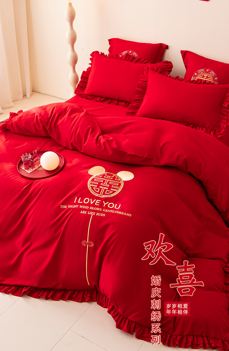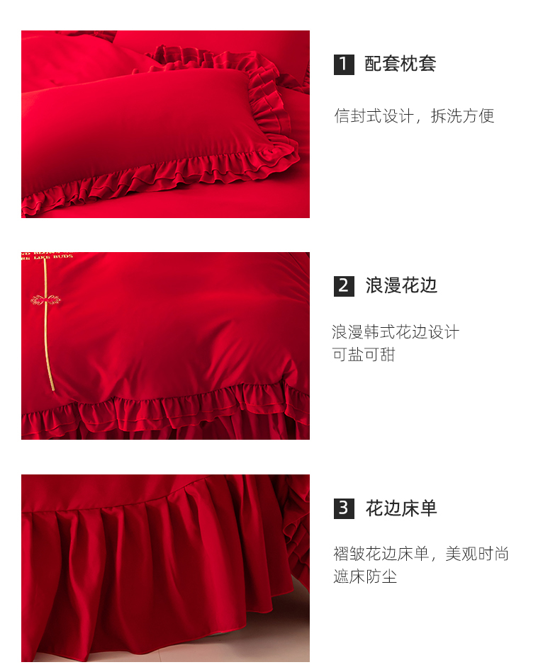当前位置: 91家纺网 > 商品网购 > 床品套件 > 四件套 > 婚庆四件套 > 玉雅家纺 2025新款磨毛时尚花边款床裙婚庆四件套 花边款-爱的故事