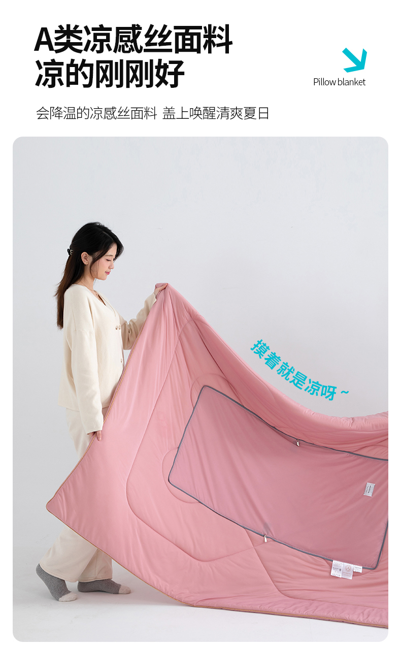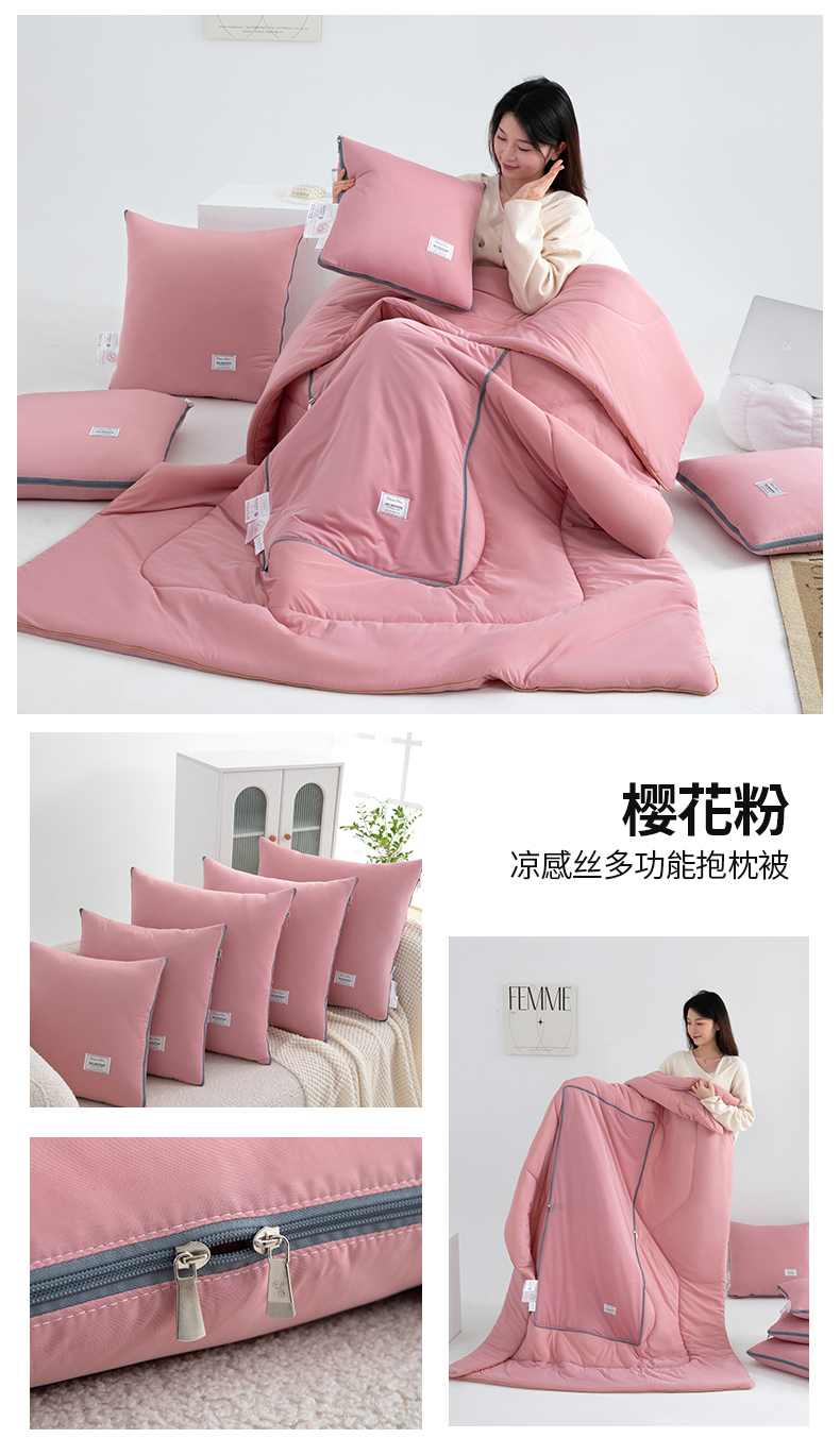 商品名称:照世 2024新款凉感丝贴布绣抱枕被 樱花粉