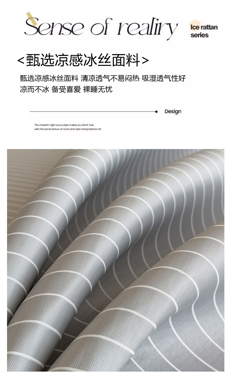 当前位置: 91家纺网 > 商品网购 > 床上用品 > 凉席 > 乳胶凉席 > 印季 2024新款凉感系列-丝滑凉感丝软席 条纹-灰色