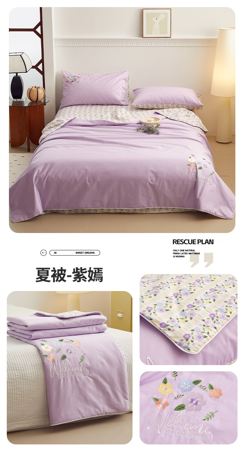 • 91家纺网 家纺一手货源 找家纺 怡家居 2024新款全棉印加绣夏被 夏被-紫嫣