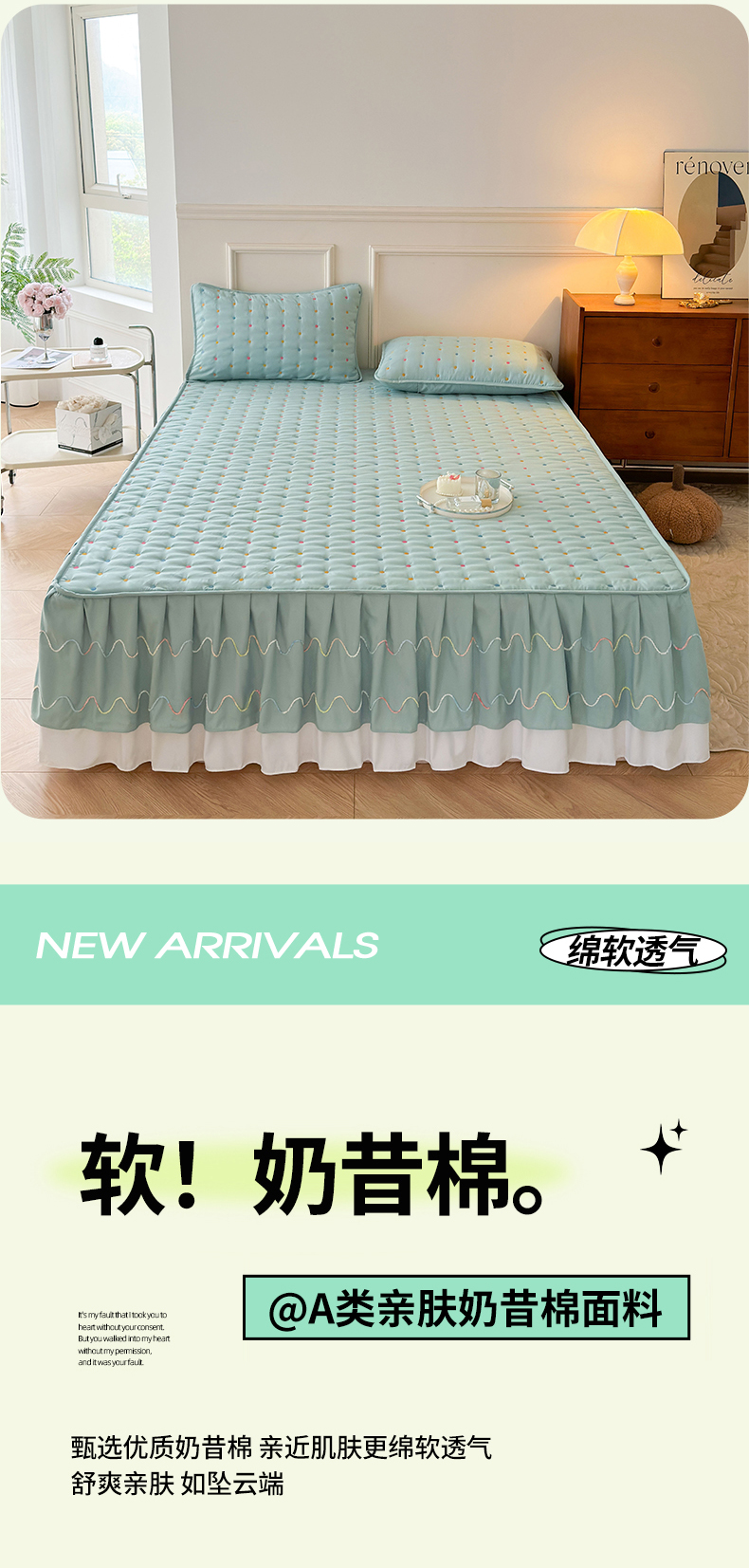 尊康家纺(原磊科) 2024新款亲肤奶昔棉夹棉床裙-风雅 风雅-奶白,风雅-奶白