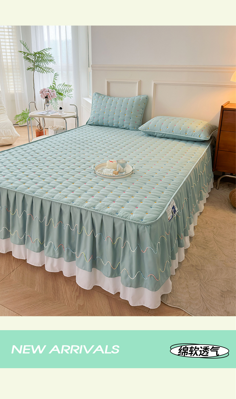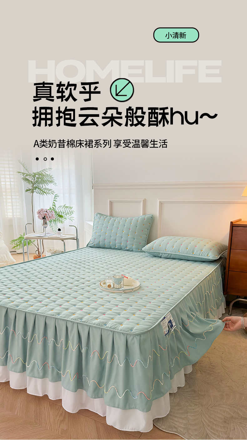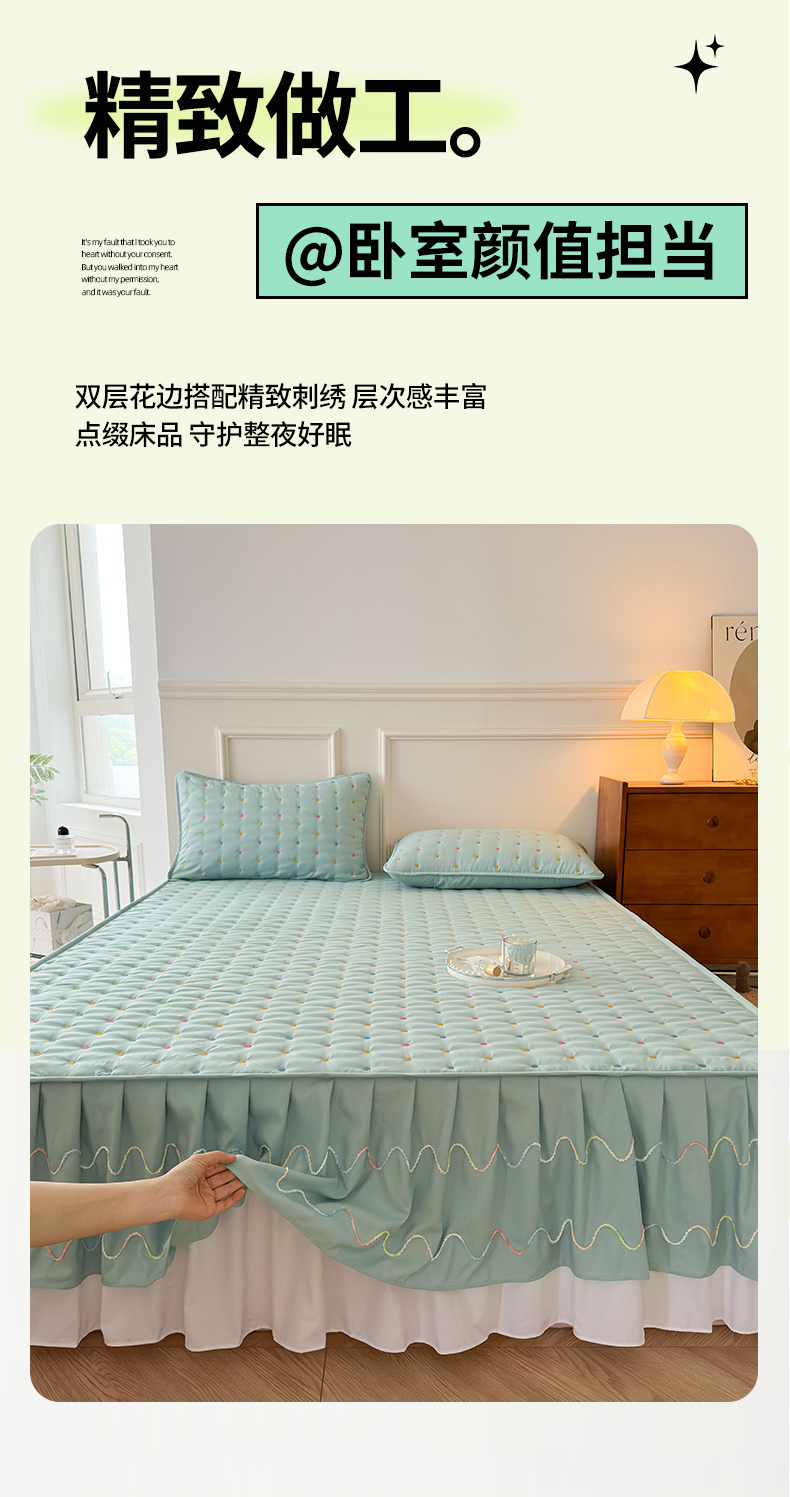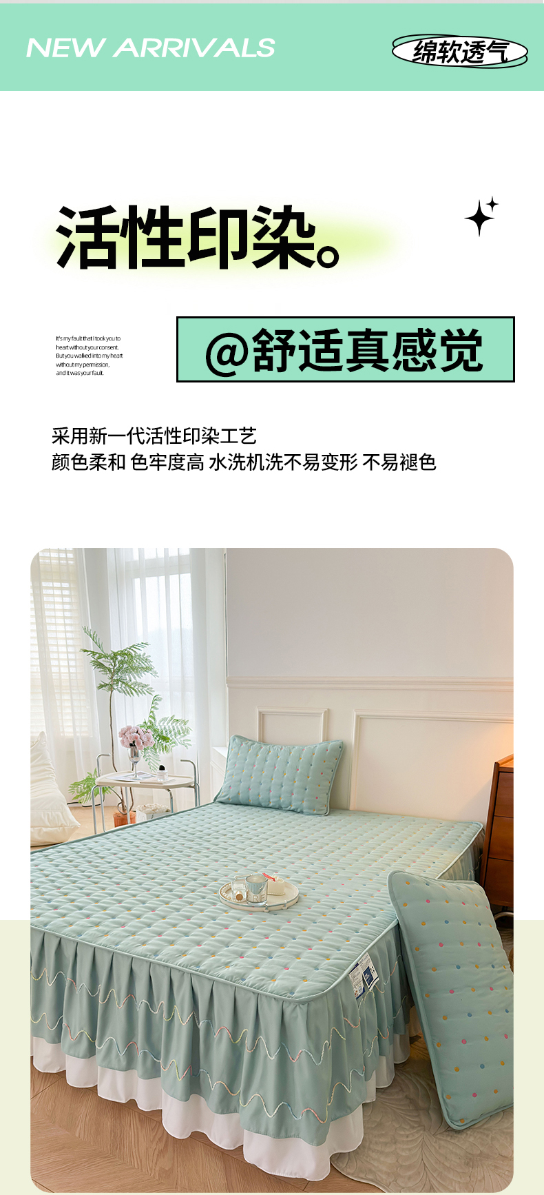 (总)尊康家纺(原磊科) 2024新款亲肤奶昔棉夹棉床裙-洛可可,洛可可-天空蓝,洛可可-奶白,洛可可-月光灰,洛可可-水波绿,洛可可-香槟金,洛可可-黛粉