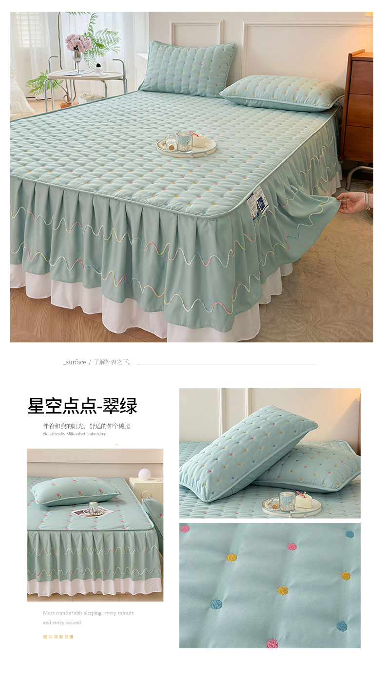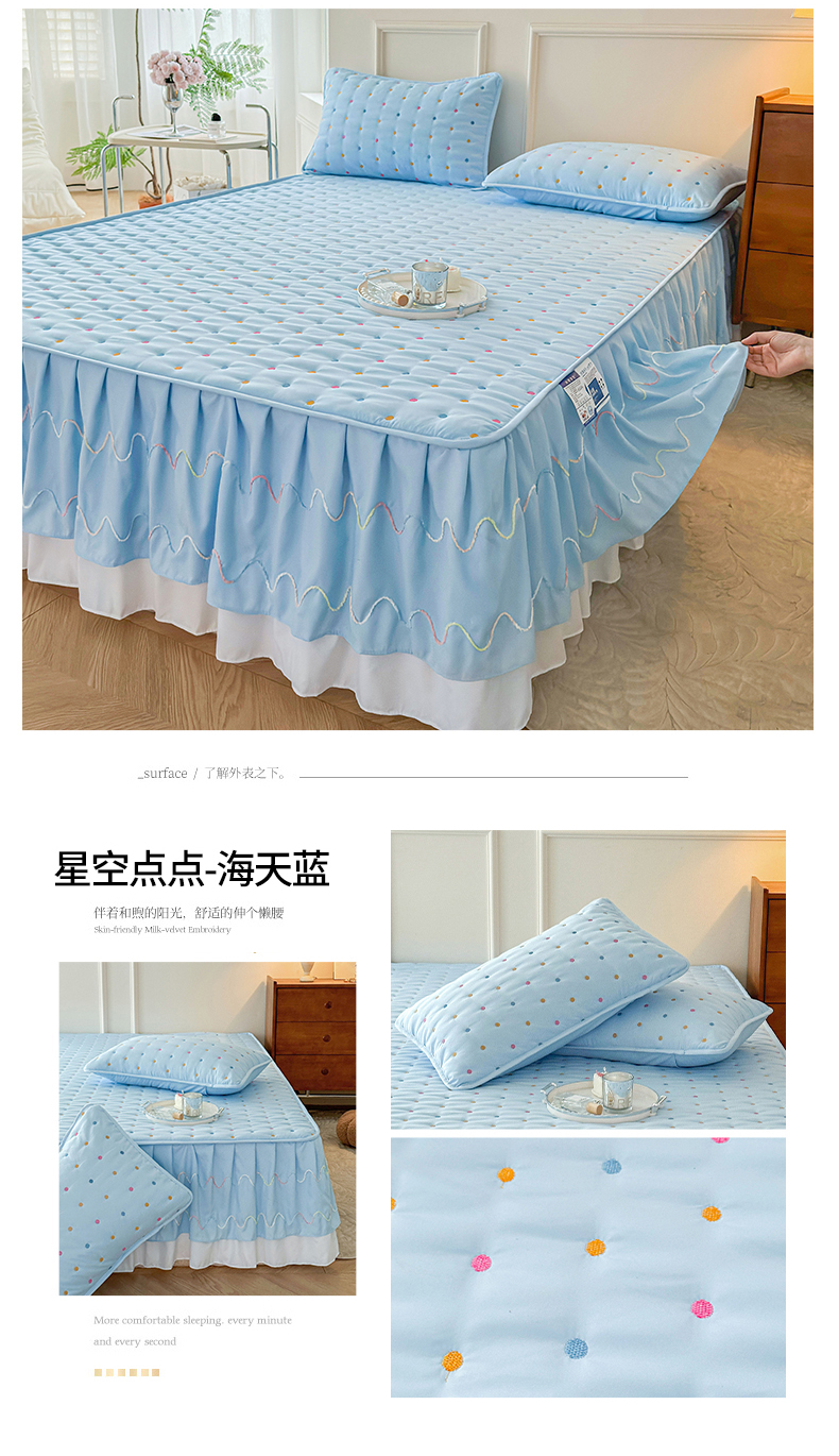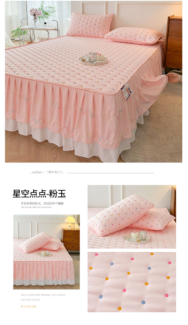 (总)尊康家纺(原磊科) 2024新款亲肤奶昔棉夹棉床裙星空点点系列