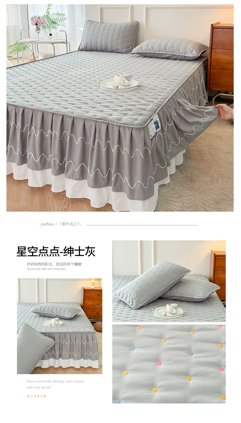 商品名称:(总)尊康家纺(原磊科) 2024新款亲肤奶昔棉夹棉床裙星空点点系列