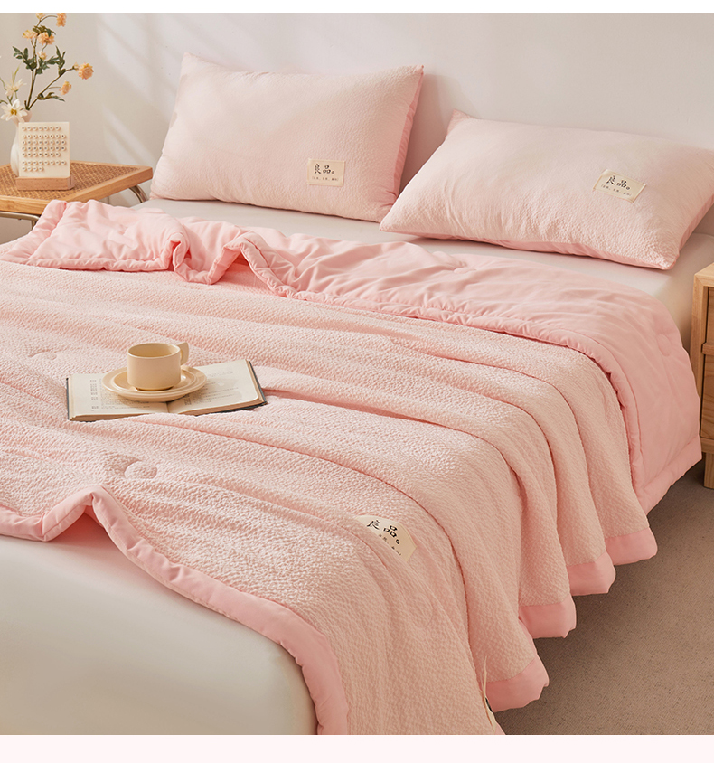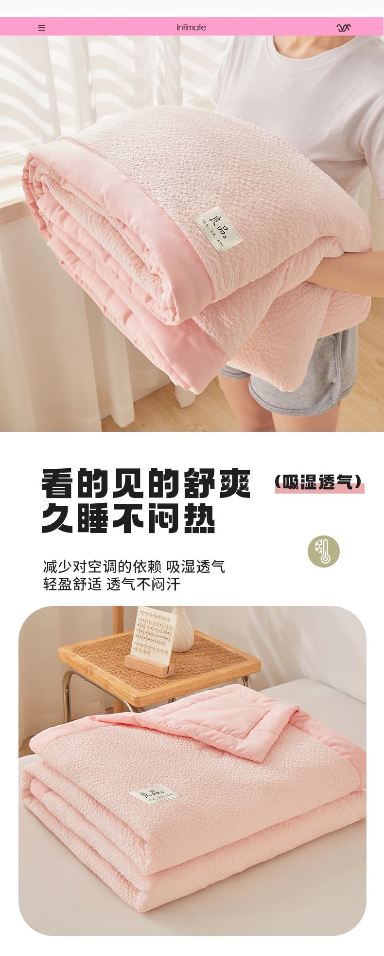 商品名称:典冠(有质检)2024爆款7D云柔皱皱纱A类棉小泡良品大豆夏被 樱花粉