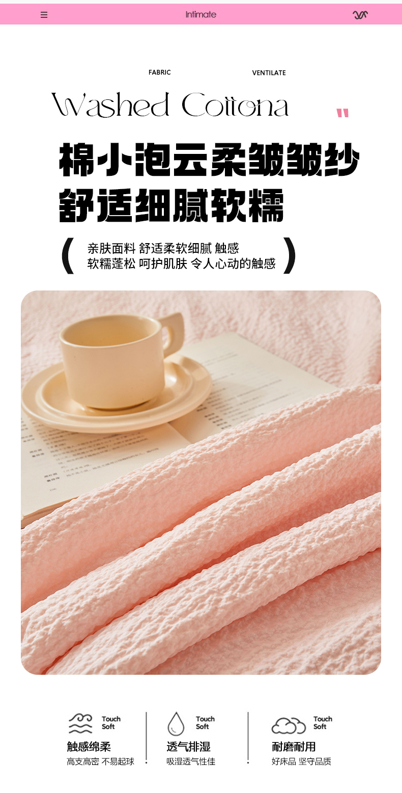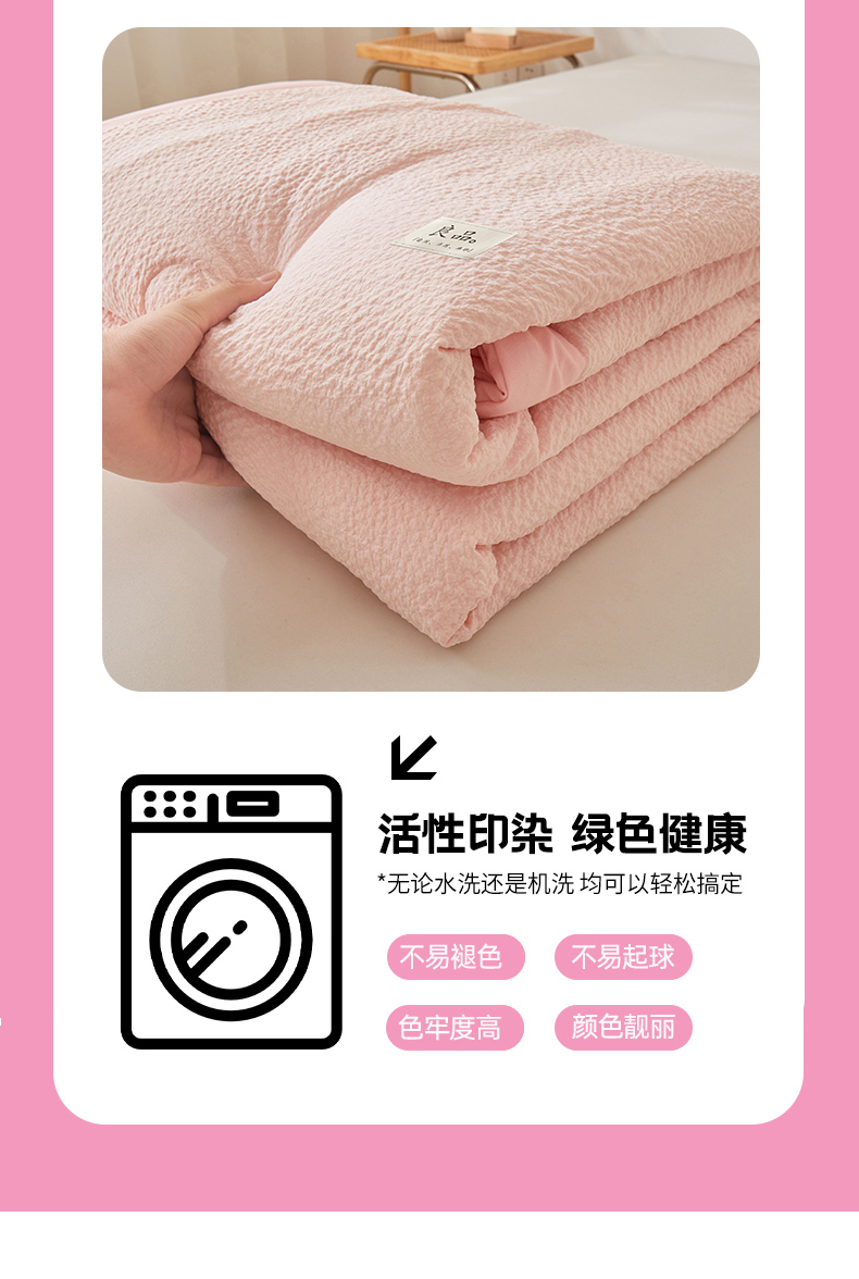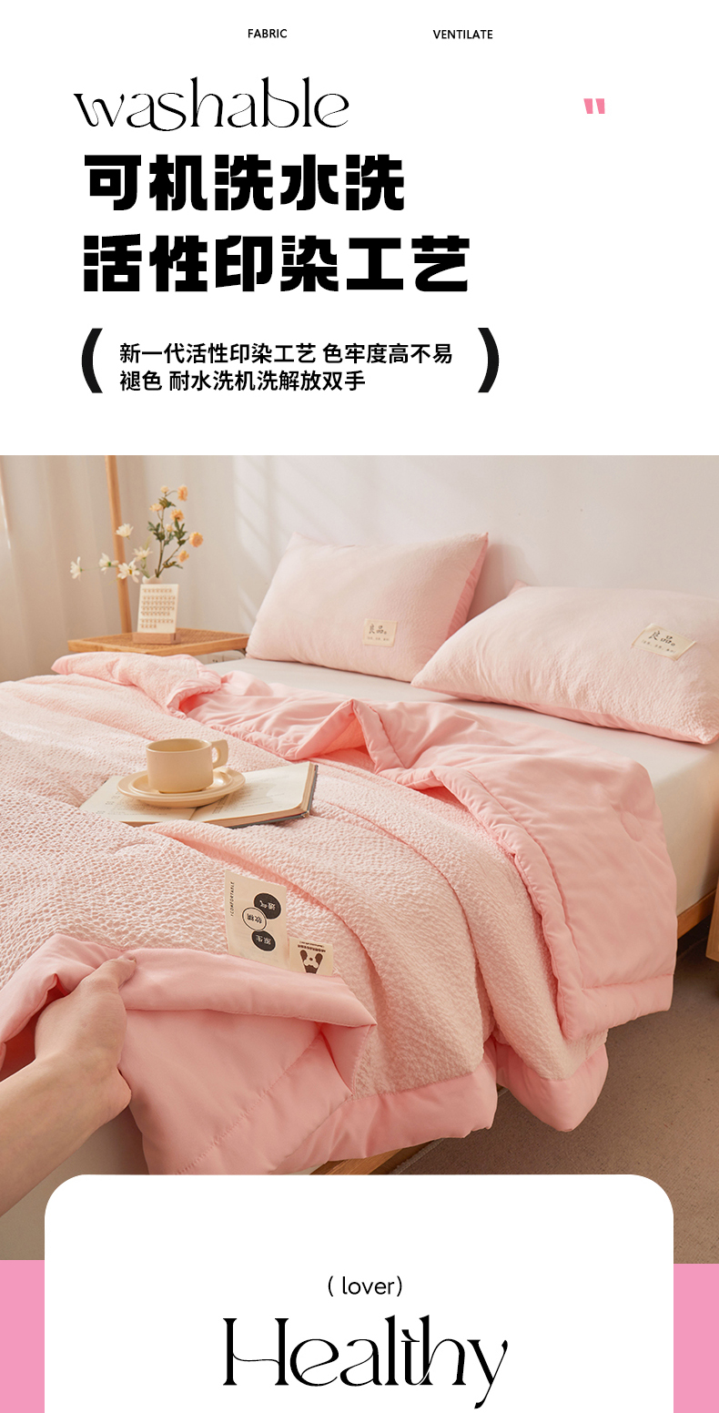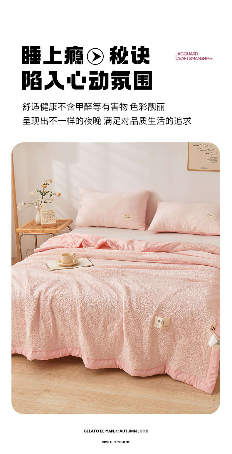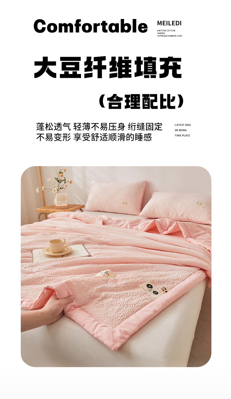 (总)典冠(有质检)2024爆款7D云柔皱皱纱A类棉小泡良品大豆夏被,奶昔白,樱花粉,绅士蓝,薄荷绿,高级灰