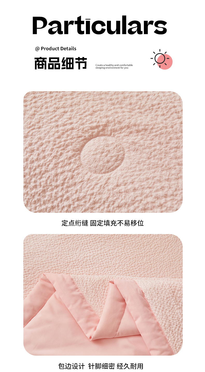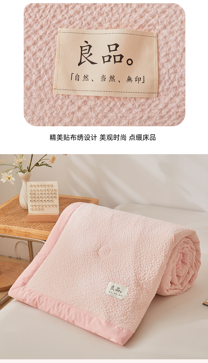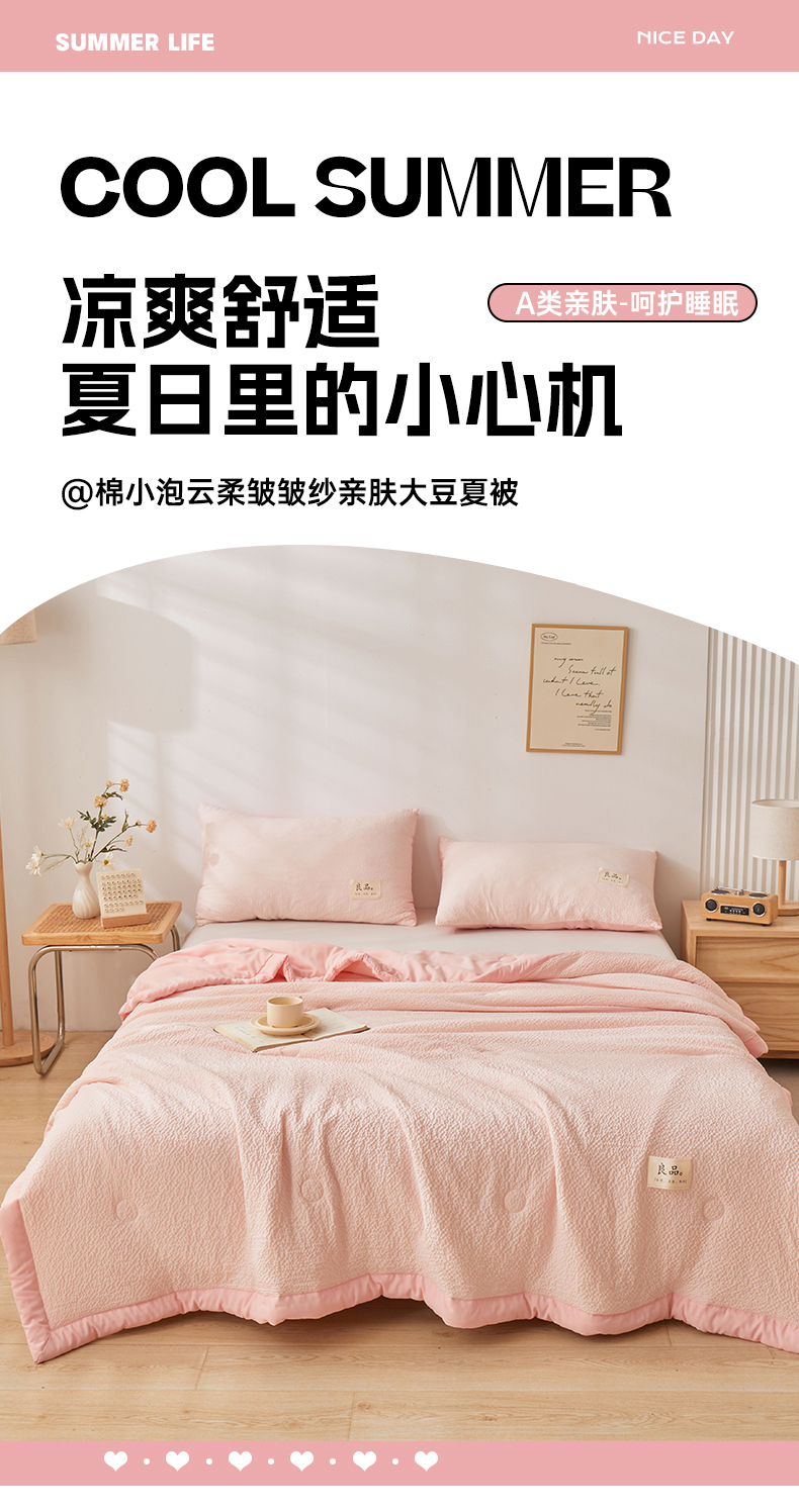典冠(有质检)2024爆款7D云柔皱皱纱A类棉小泡良品大豆夏被 樱花粉