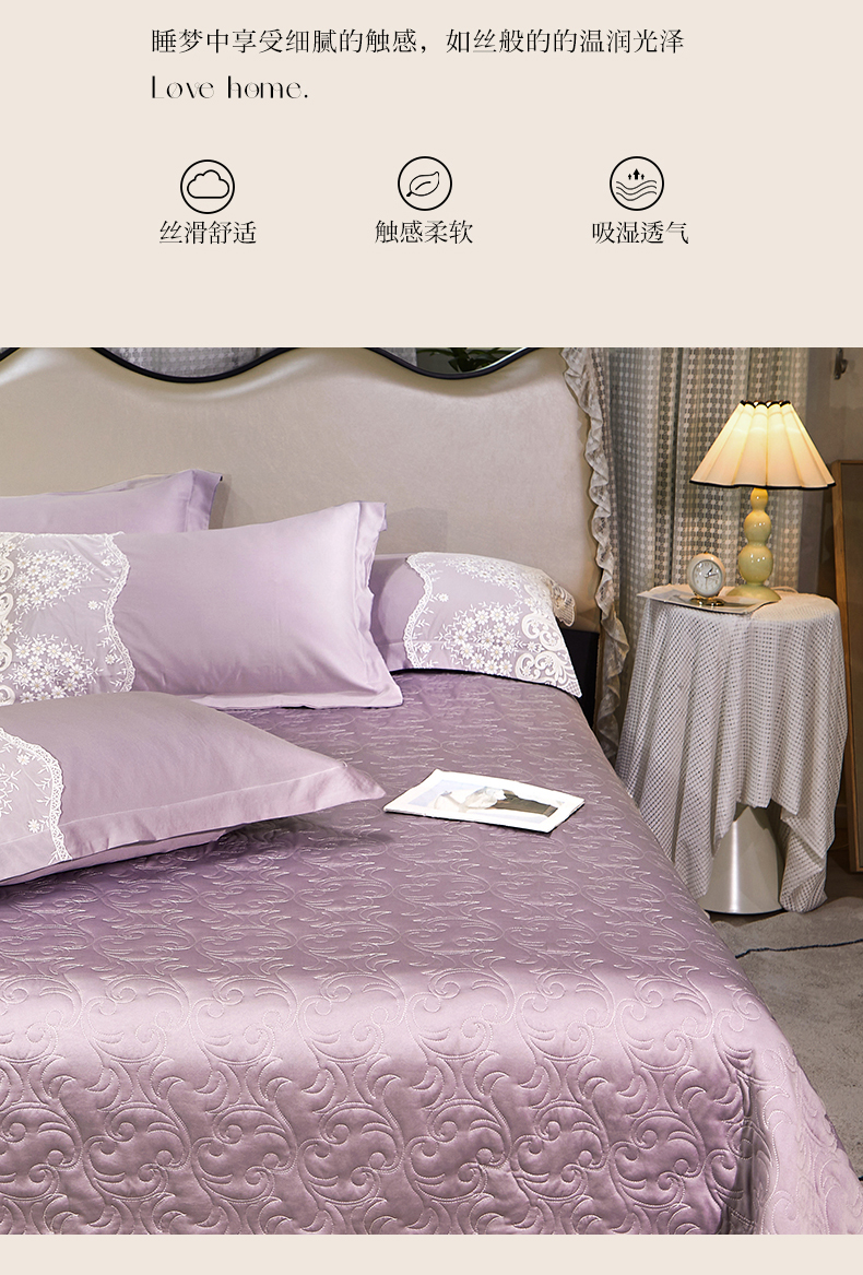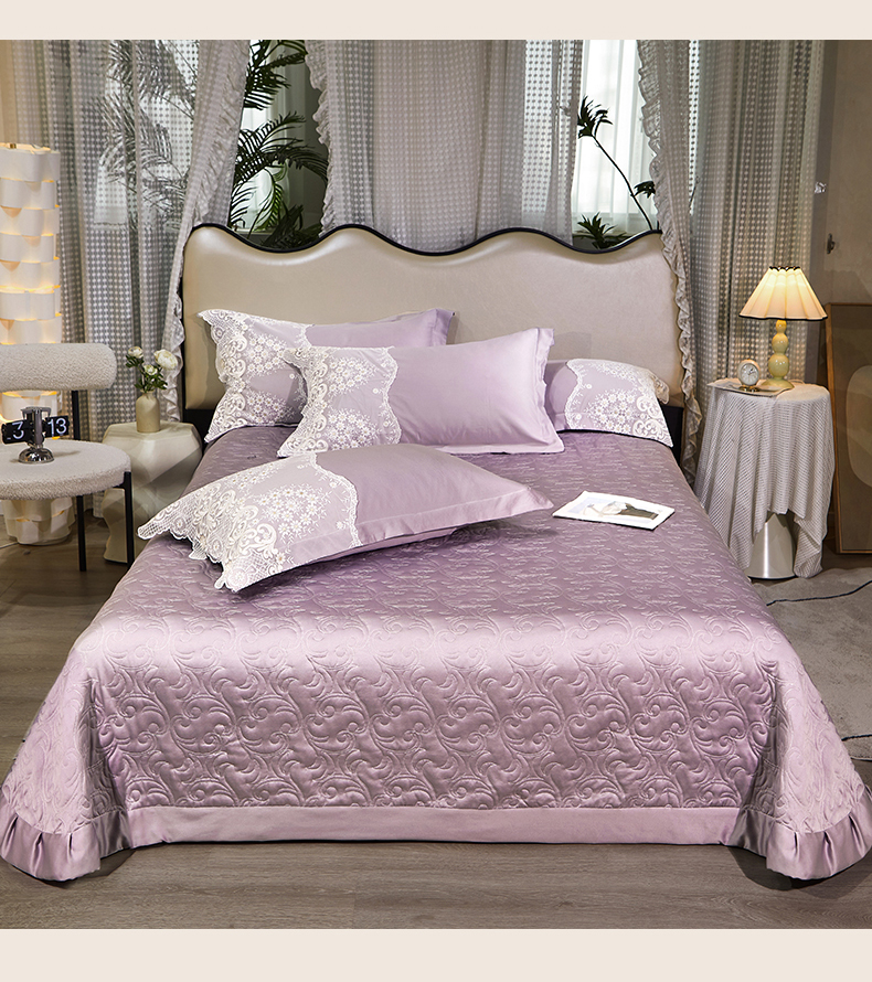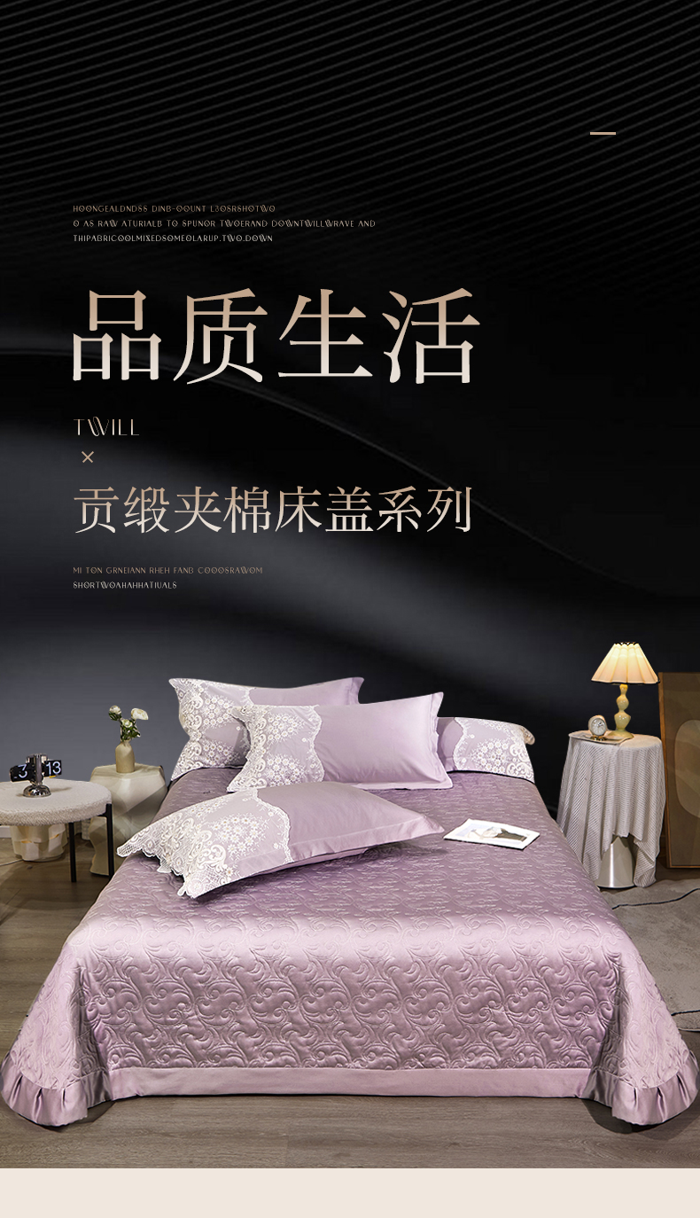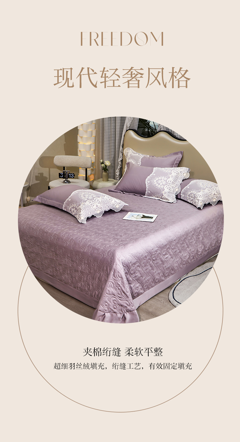 当前位置: 91家纺网 > 商品网购 > 床品套件 > 三件套 > 罗艺轩 2024新款贡缎夹棉床盖--三件套(控价110元起) 简爱-华丽紫