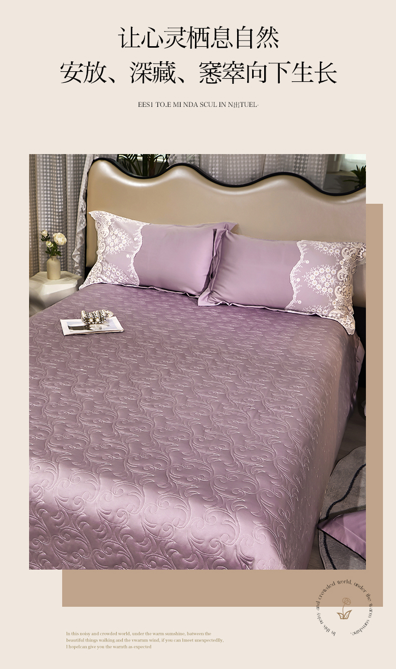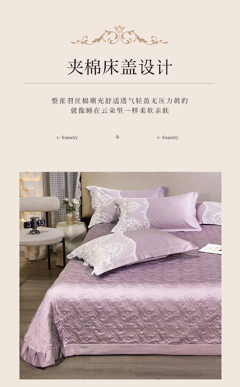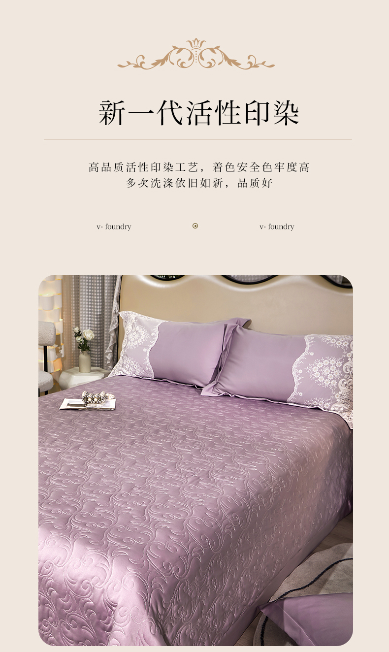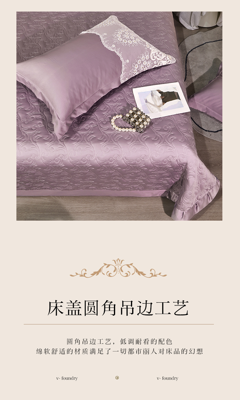 当前位置: 91家纺网 > 商品网购 > 床品套件 > 三件套 > 罗艺轩 2024新款贡缎夹棉床盖--三件套(控价110元起) 简爱-华丽紫
