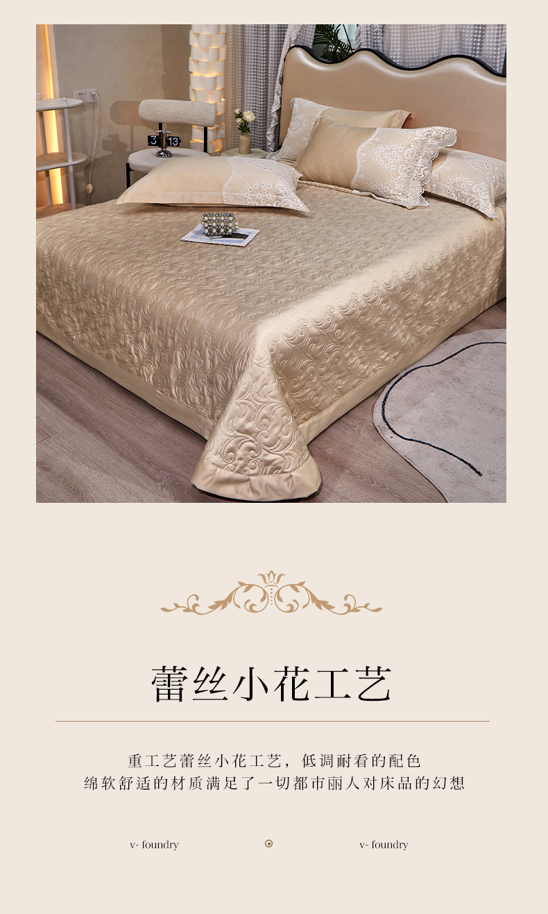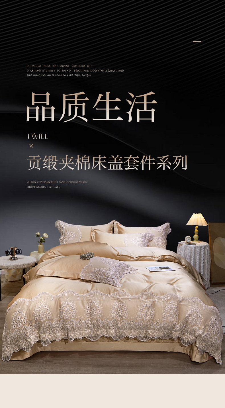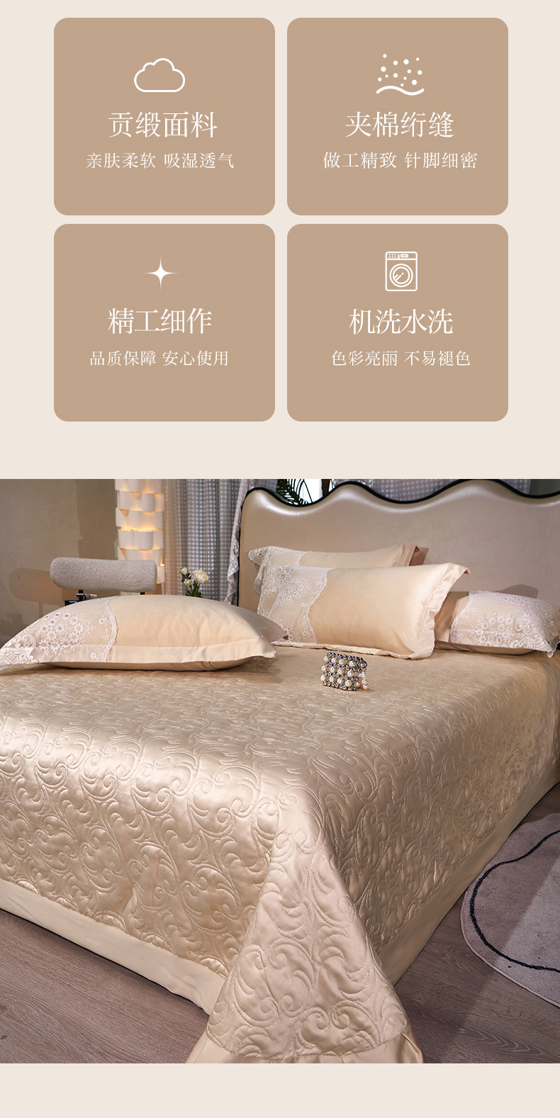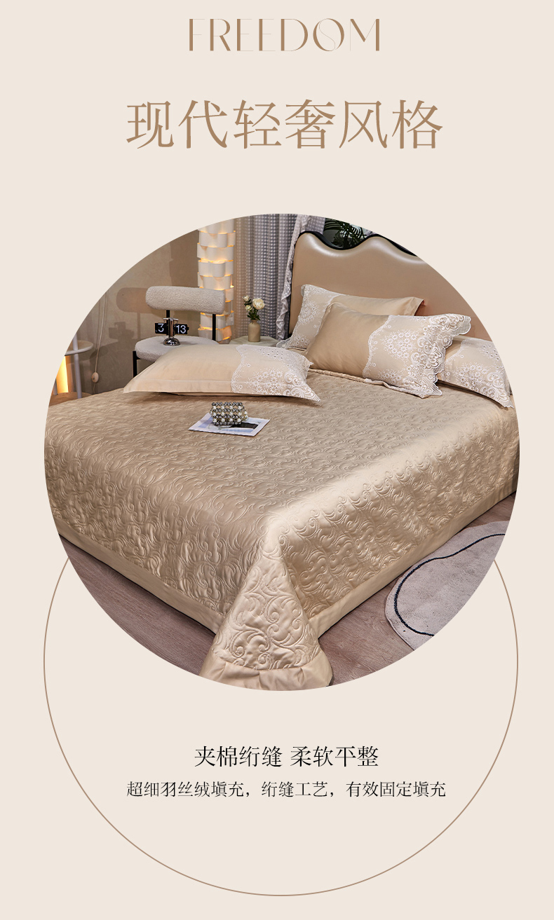 当前位置: 91家纺网 > 商品网购 > 床品套件 > 四件套 > 全棉普通四件套 > 罗艺轩 2024新款贡缎夹棉床盖--四件套(控价249元起)简爱-香槟金