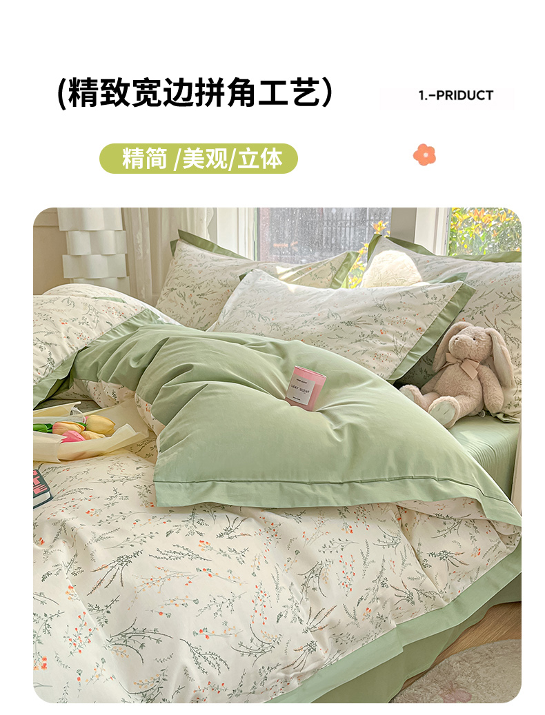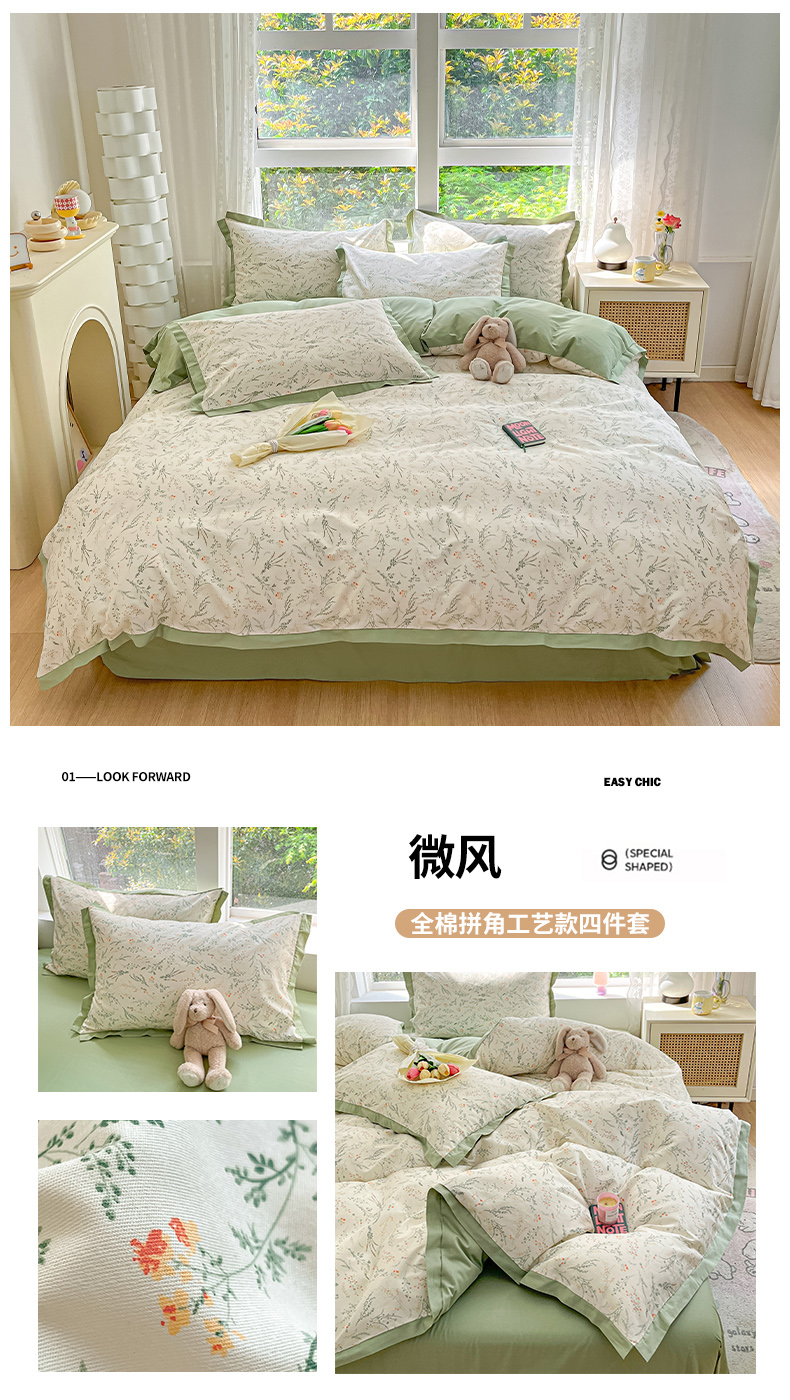 商品名称:捌月2024新款全棉印花拼角工艺款四件套 微风