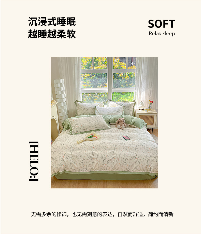 (总)捌月 2025新款13372全棉四件套花园里系列小清新全棉四件套热卖新品,艾美,蓝风铃,蓝汐,流年,魅影,木兰,年华,浅浅,青花瓷,青木,轻颜,韶华,思绪,汐月