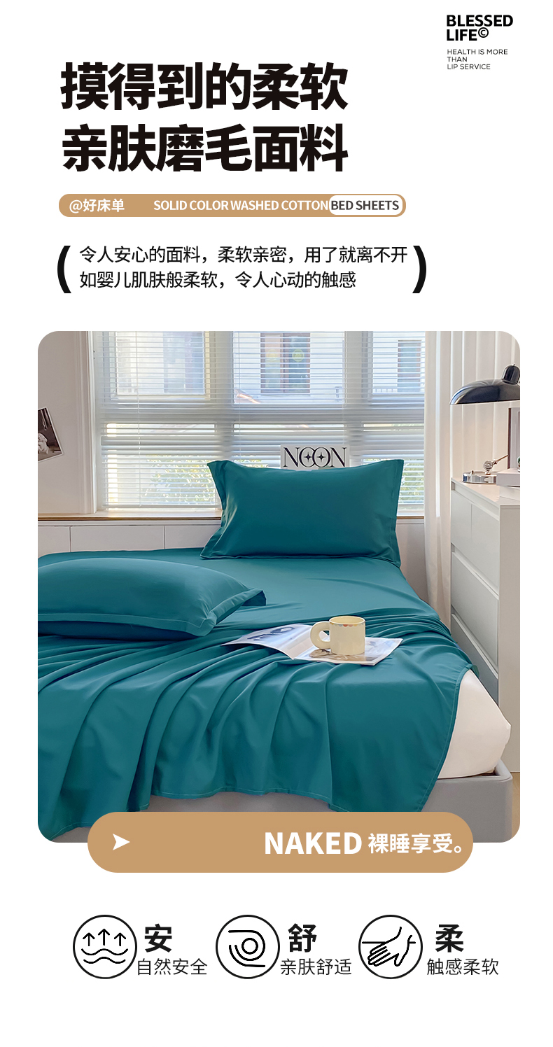 商品名称:恬澳家纺 2024新款亲肤磨毛纯色床单 深海蓝