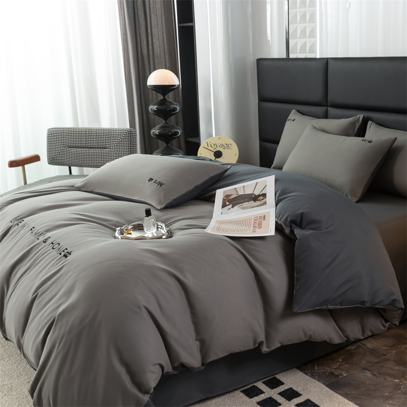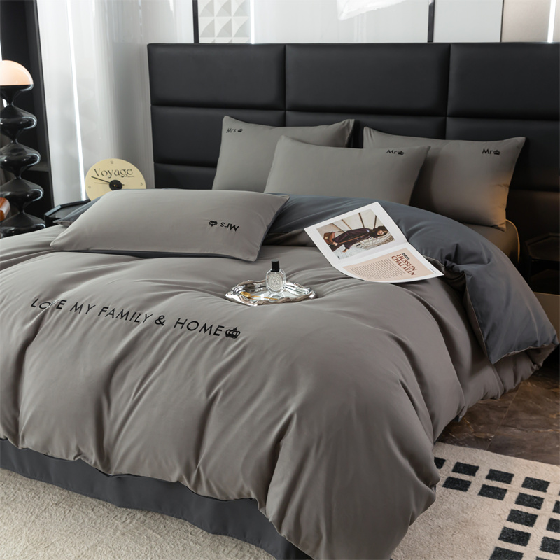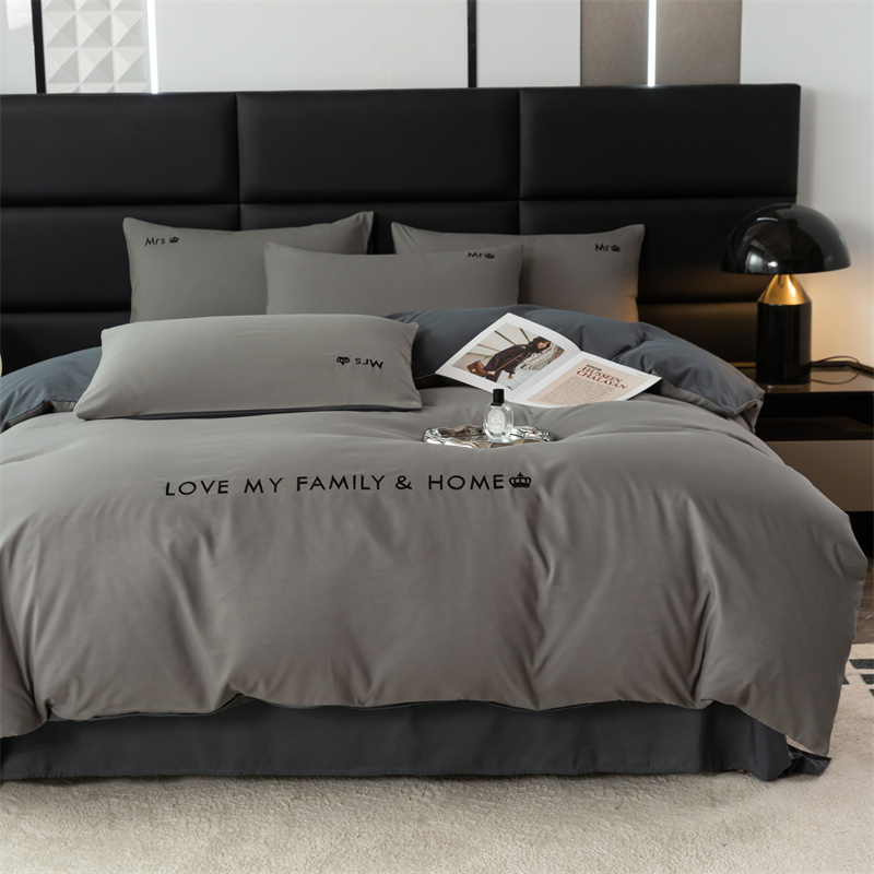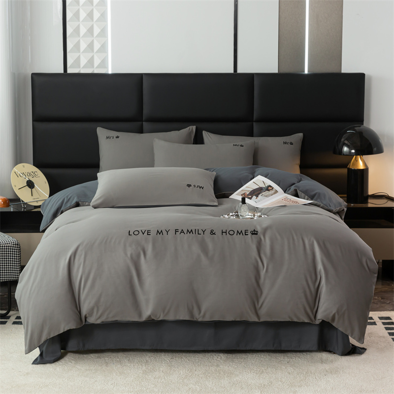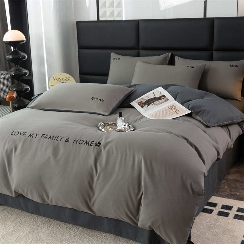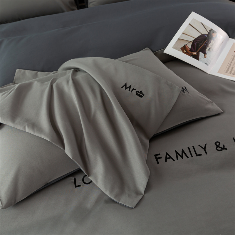 梦莱家纺 2024新款磨毛刺绣四件套 浅灰
