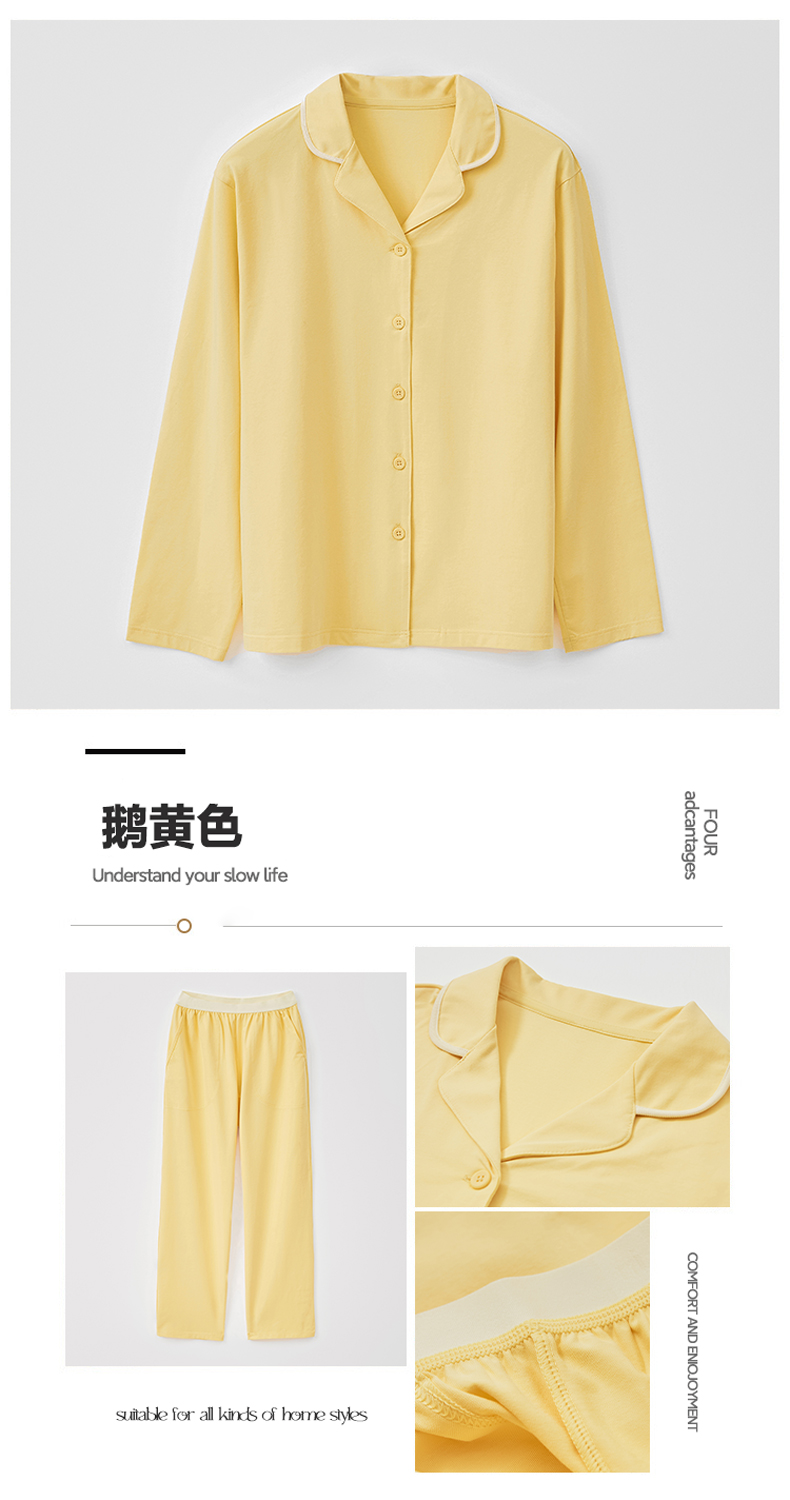 商品名称:EH 2024新款全棉男女情侣款家居服-男女款翻领 女款鹅黄色