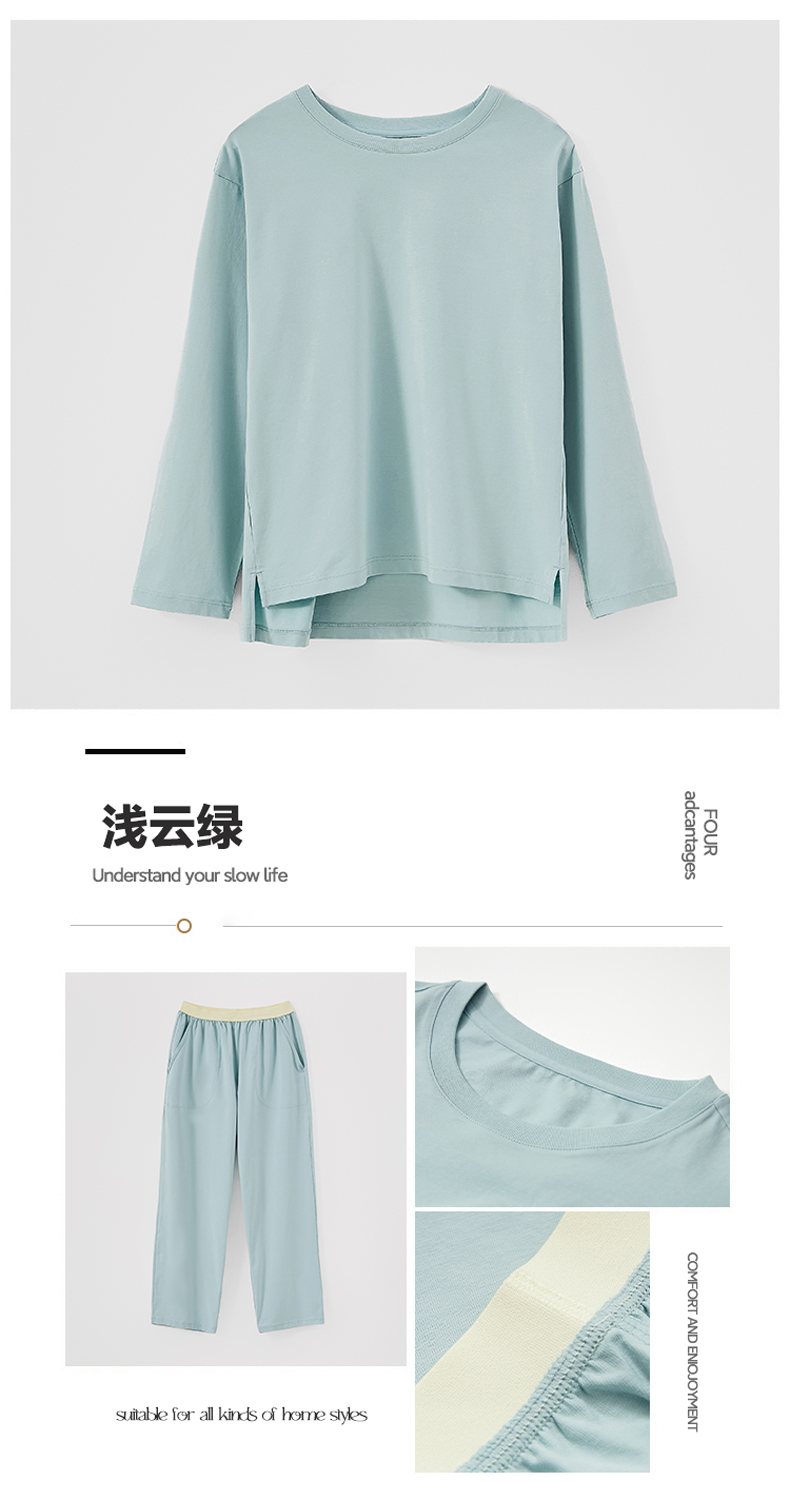 商品名称:EH家居 2024新款全棉男女情侣款家居服-女款圆领 浅云绿
