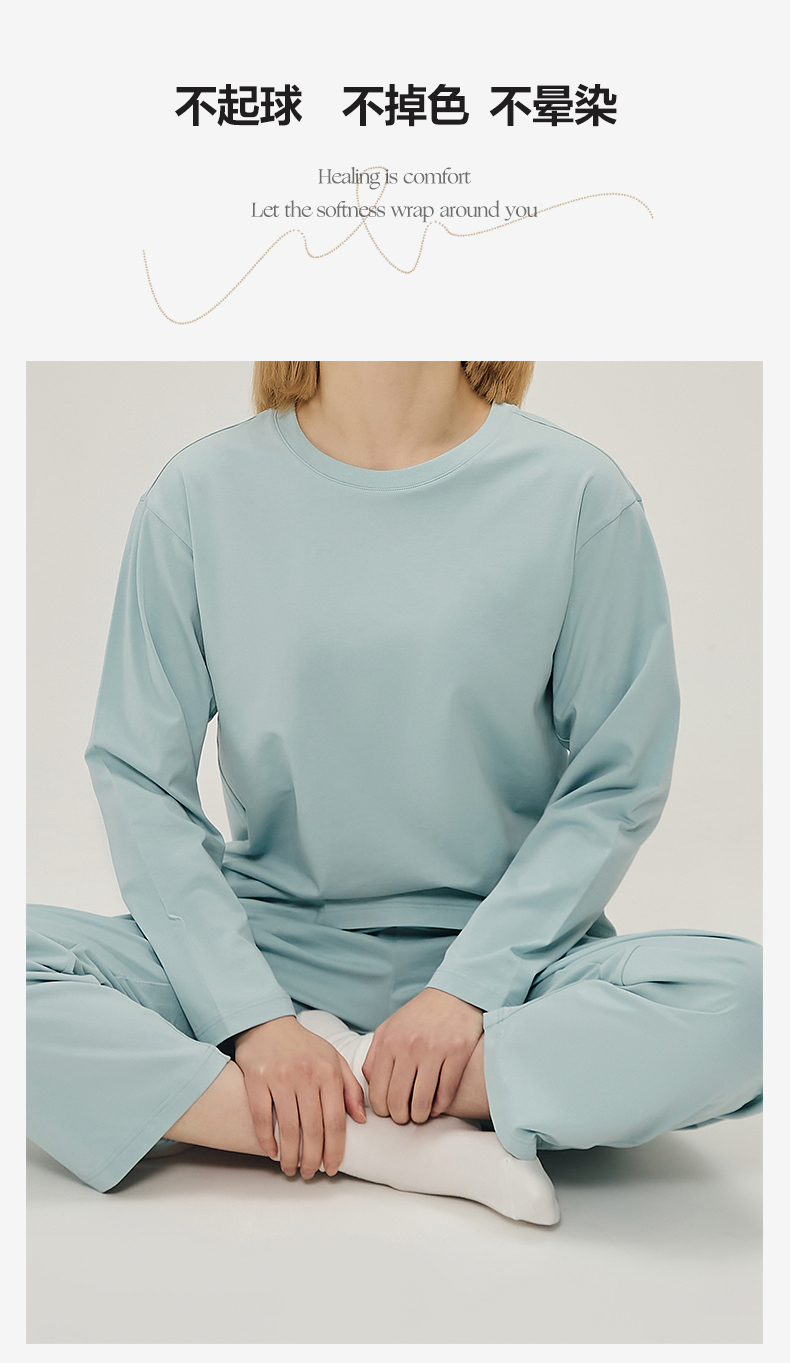EH家居 2024新款全棉男女情侣款家居服-女款圆领 浅云绿