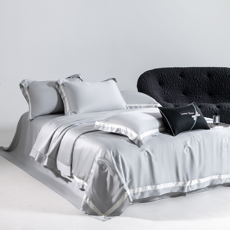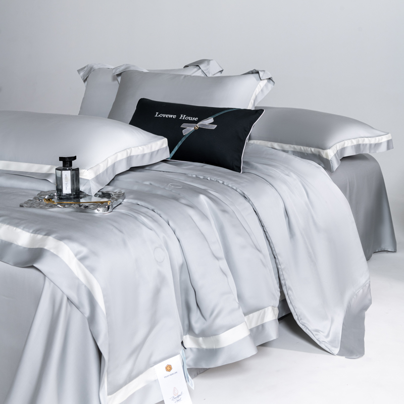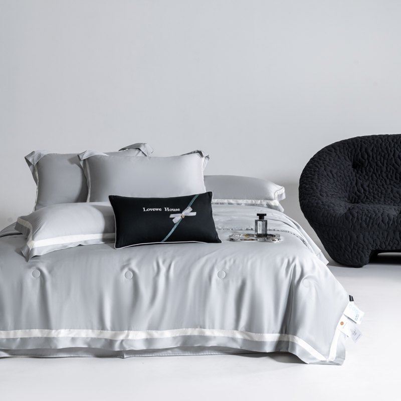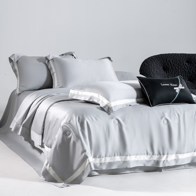 商品名称:若未家居 2025新款50S莱赛尔天丝双拼夏被四件套瑞拉夏被四件套 瑞拉-气质灰