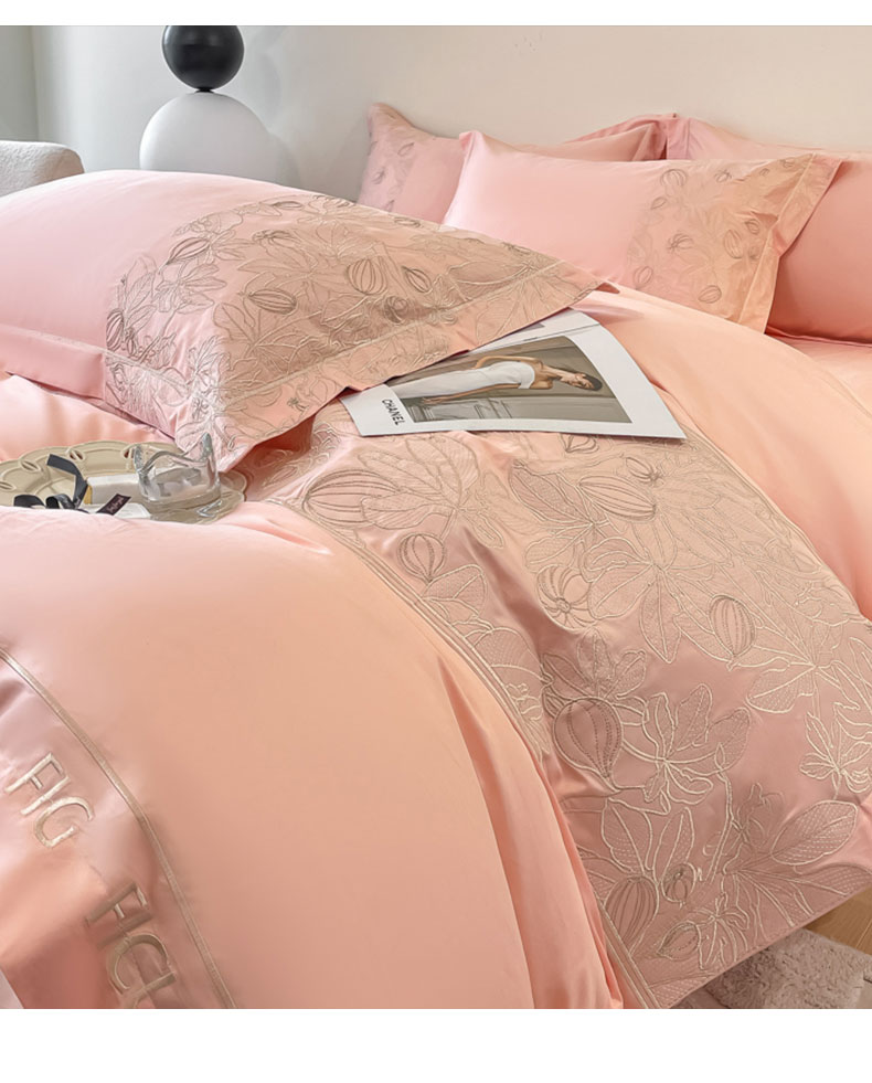 红嘴企鹅 2025新款无花果水洗真丝四件套 无花果-粉色