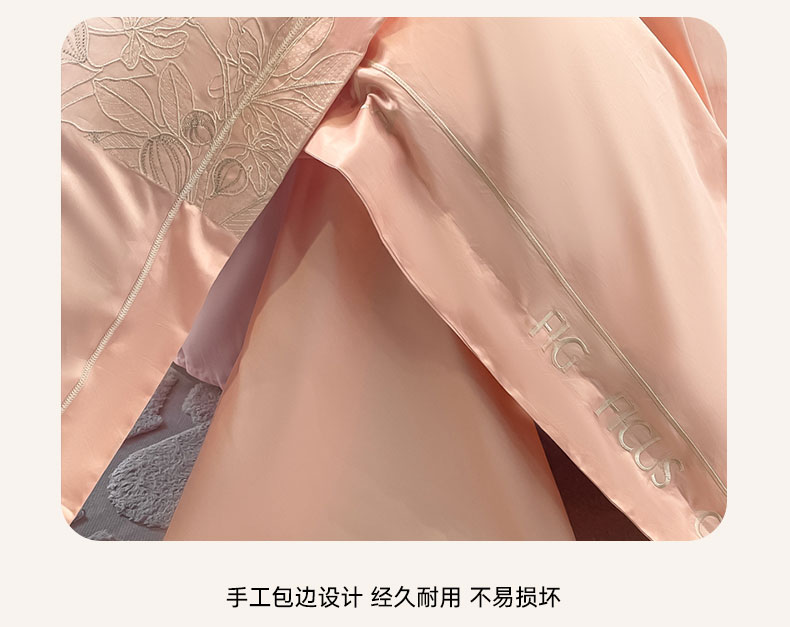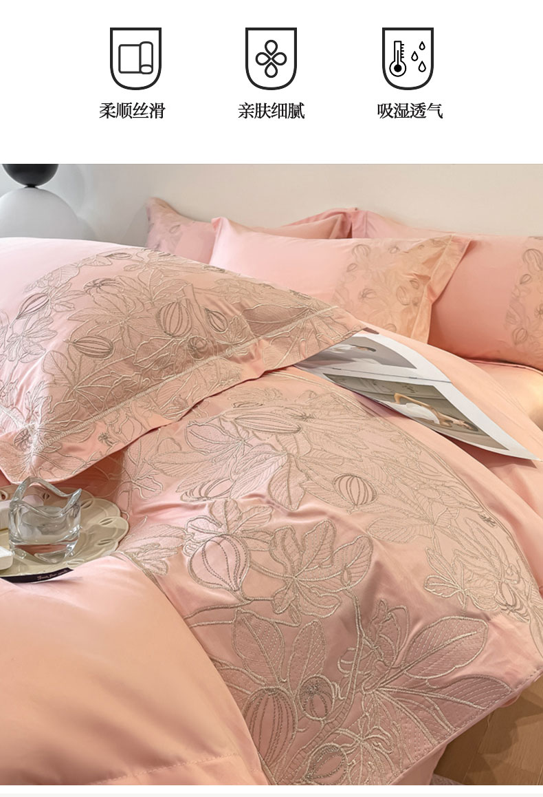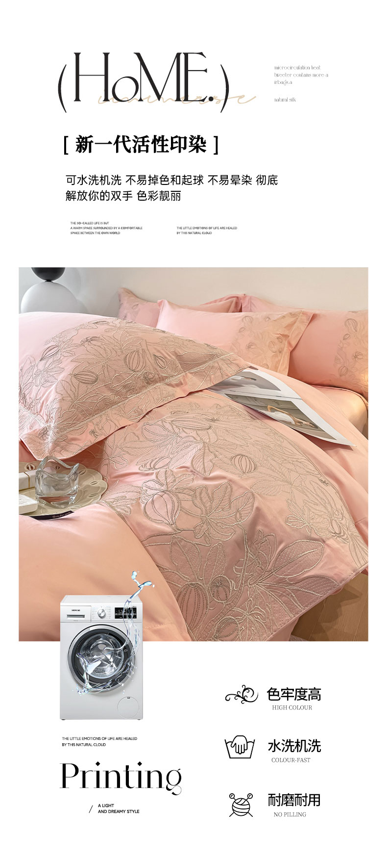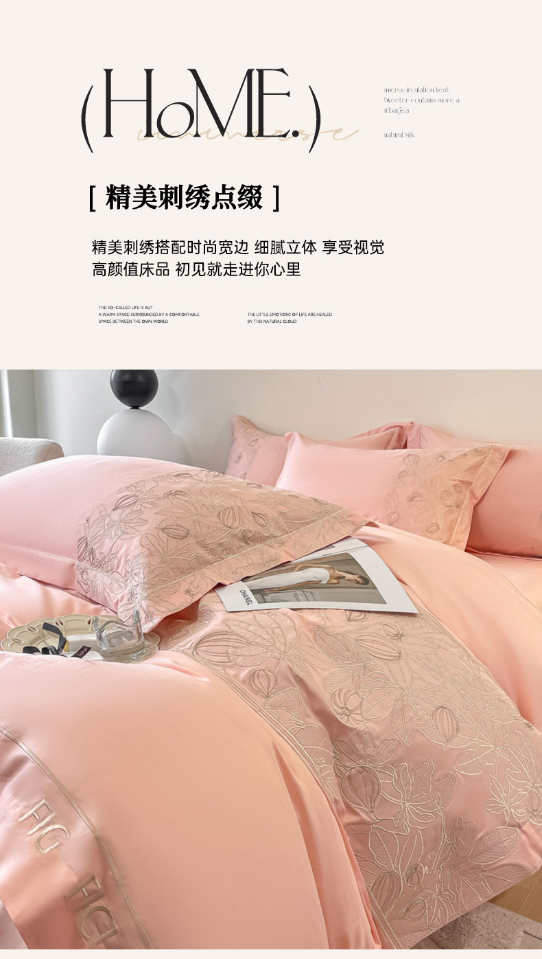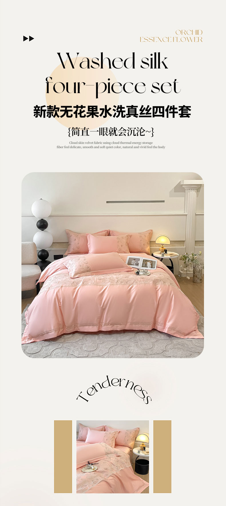 商品名称:红嘴企鹅 2025新款无花果水洗真丝四件套 无花果-粉色