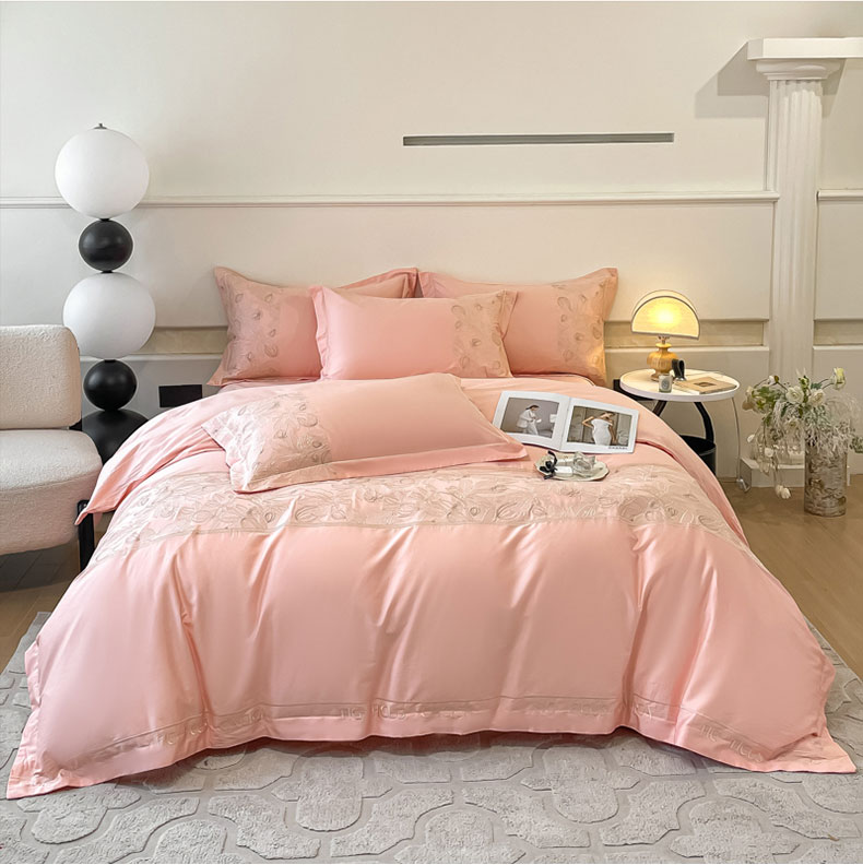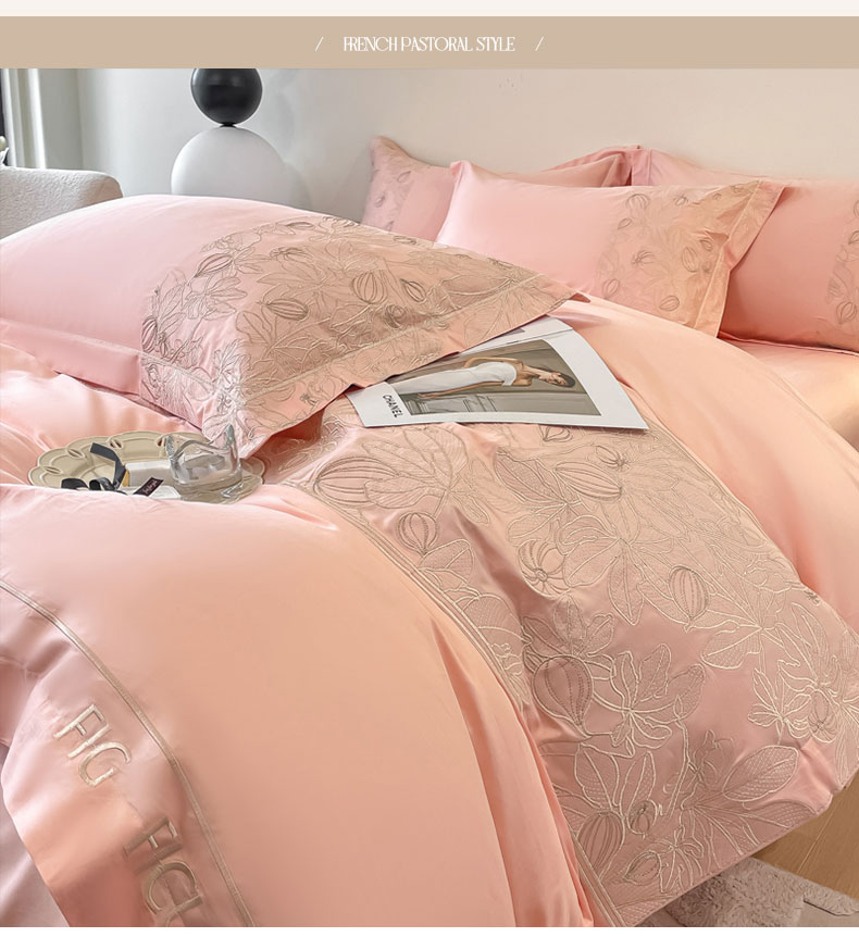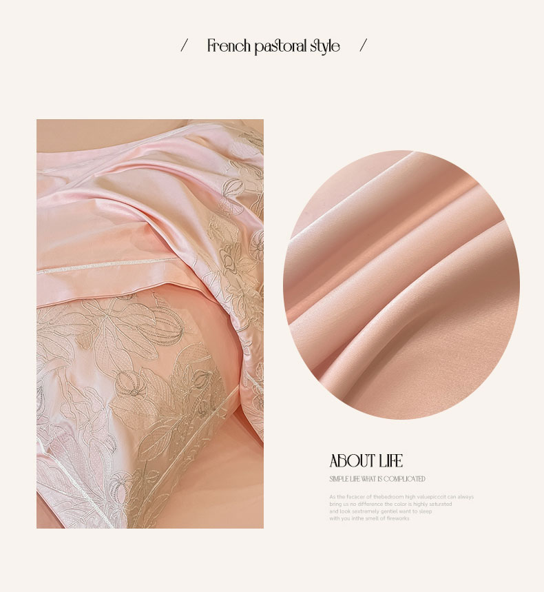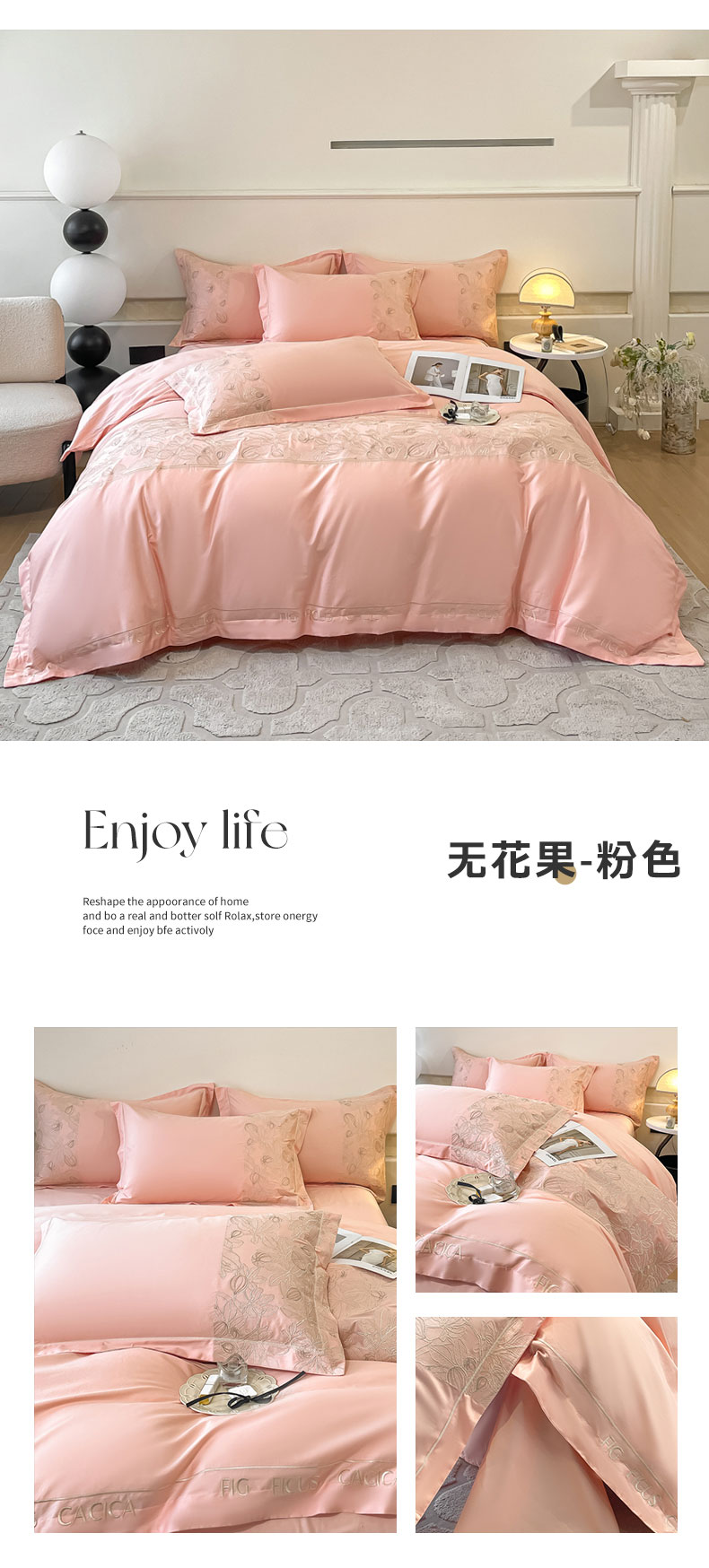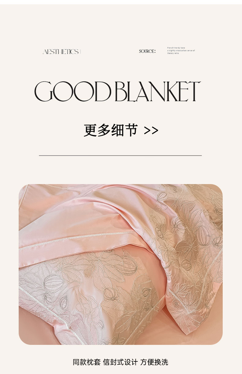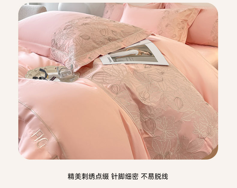 商品名称:红嘴企鹅 2025新款无花果水洗真丝四件套 无花果-粉色