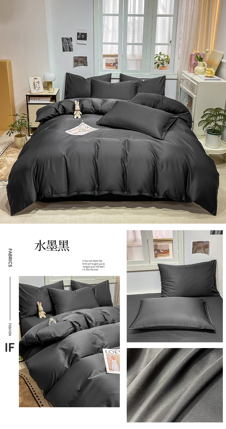 当前位置: 91家纺网 > 商品网购 > 床品套件 > 四件套 > 真丝四件套 > 乐沐家纺 2024新款夏季水洗冰丝四件套水洗真丝纯色双拼单被套 水墨黑