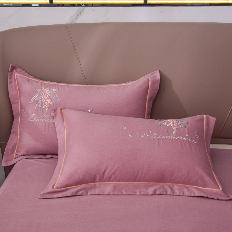 艾迪尚家纺 2025新款纯色生态磨毛绣花单枕套 幸福树-豆沙