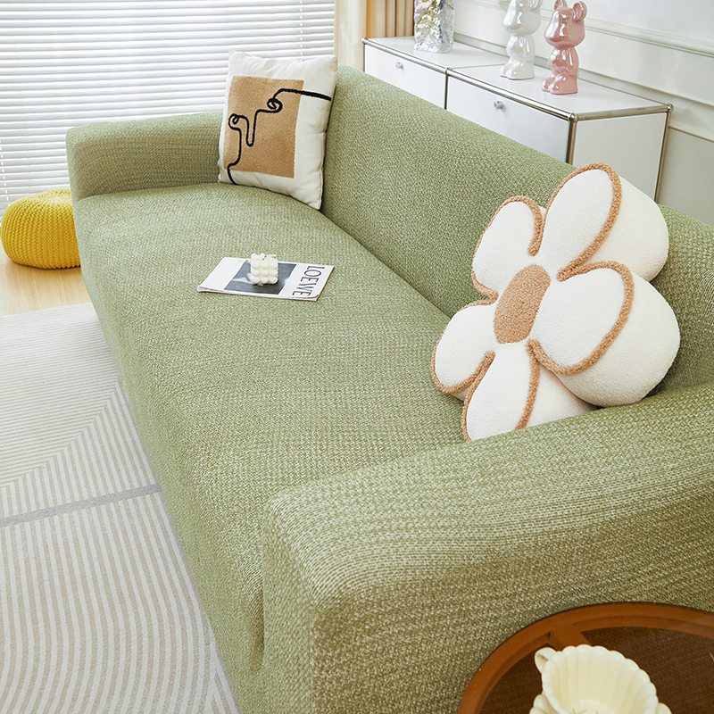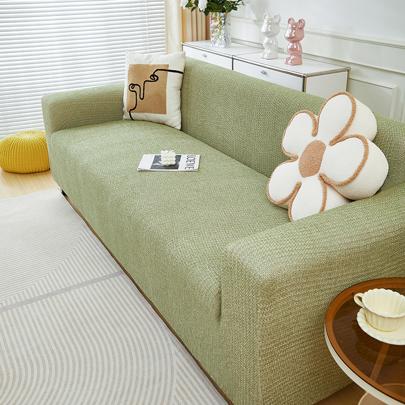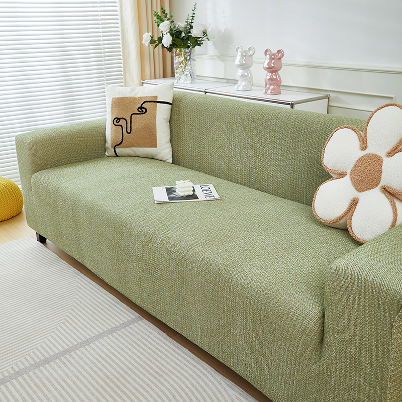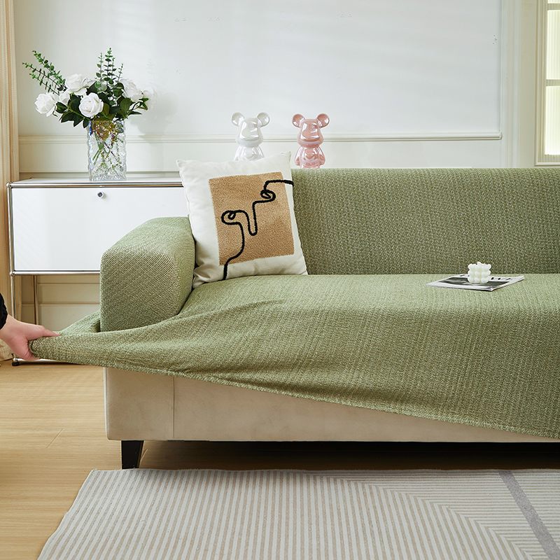 (总)丝绮鹿 2025新款仿麻雪尼尔系列沙发套(素栩)-大三人,黑巧灰,奶油杏,秋叶黄,松枝绿,银河灰