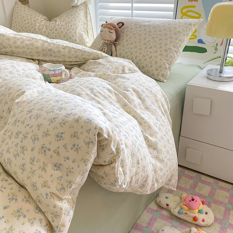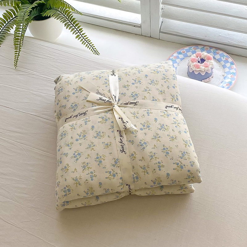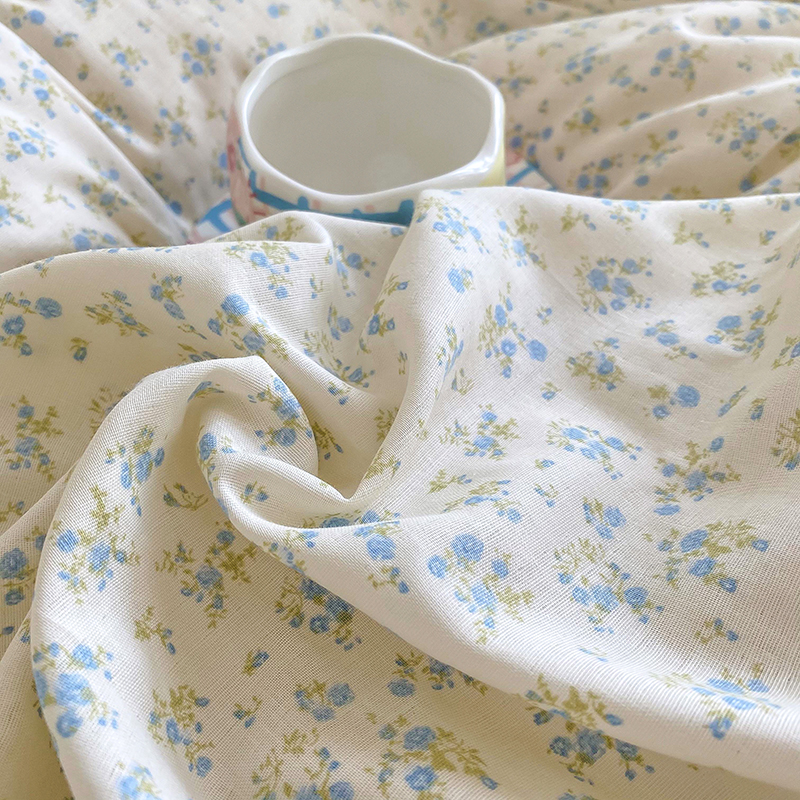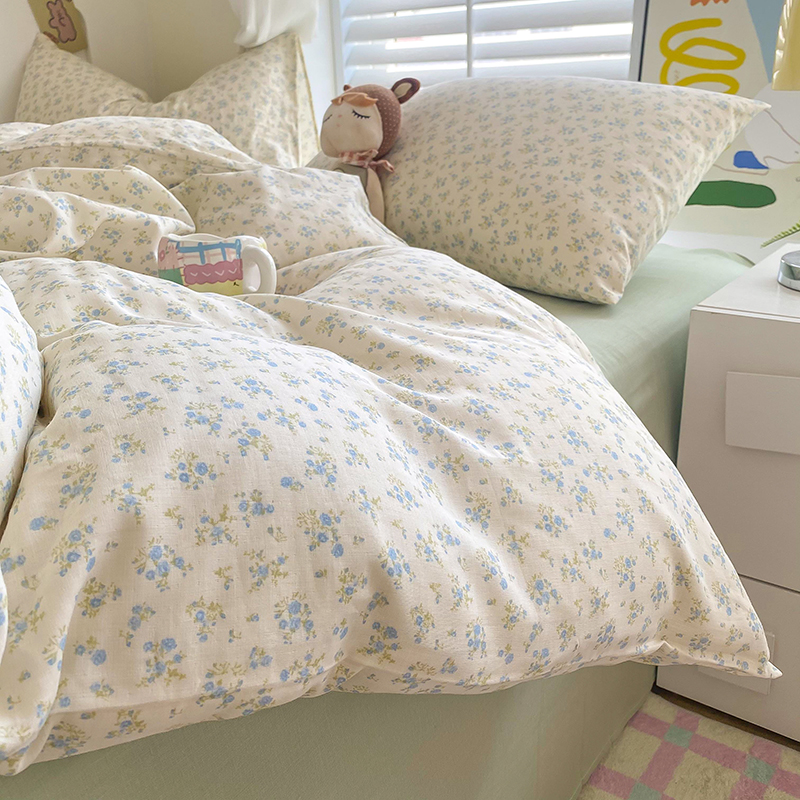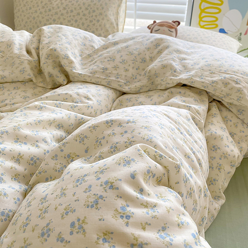 商品名称:爵仕家纺 2025小清新风格双层纱纯棉四件套 蓝小朵