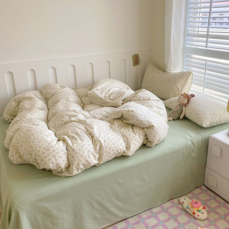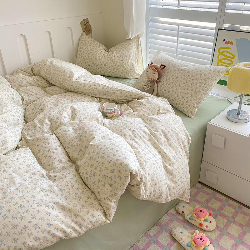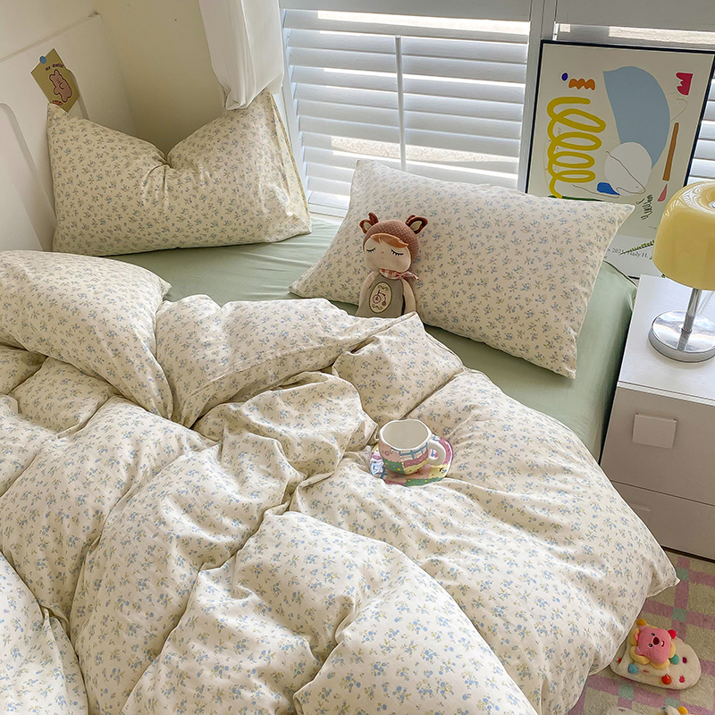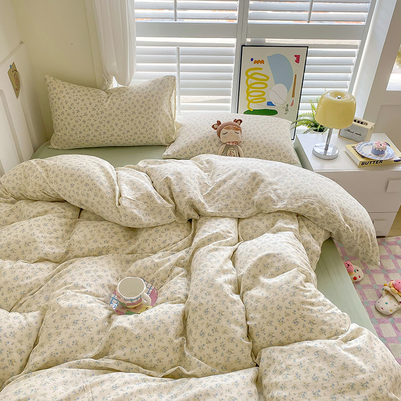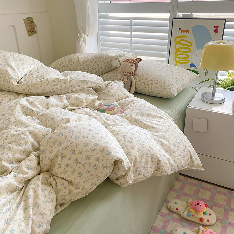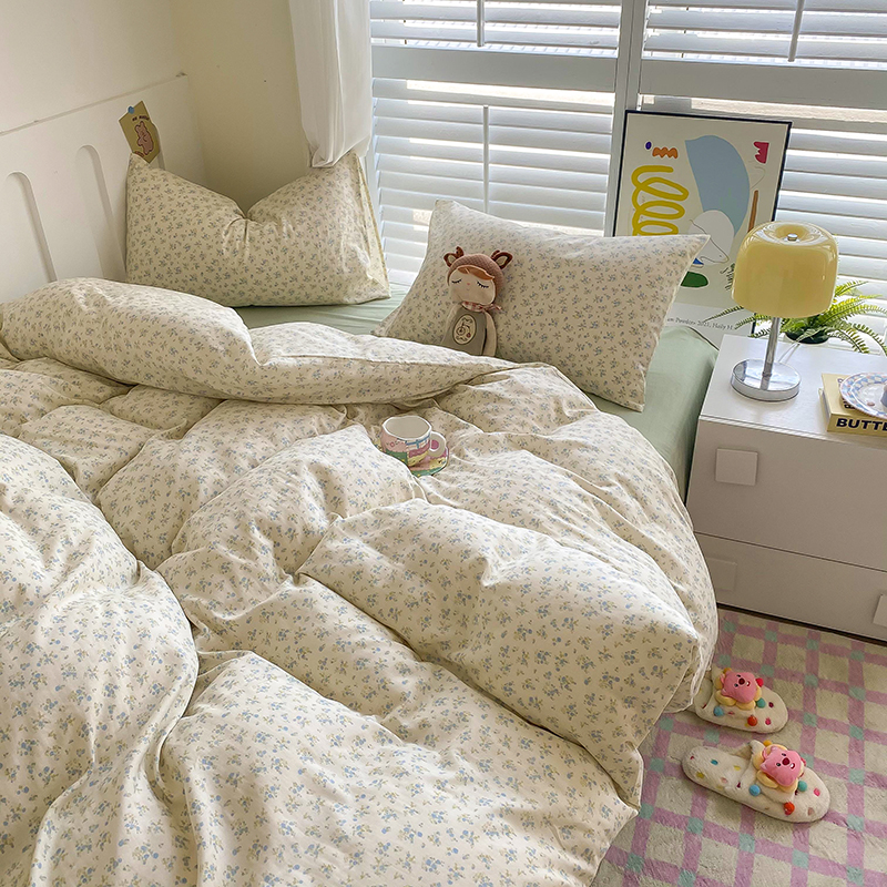 商品名称:爵仕家纺 2025小清新风格双层纱纯棉四件套 蓝小朵