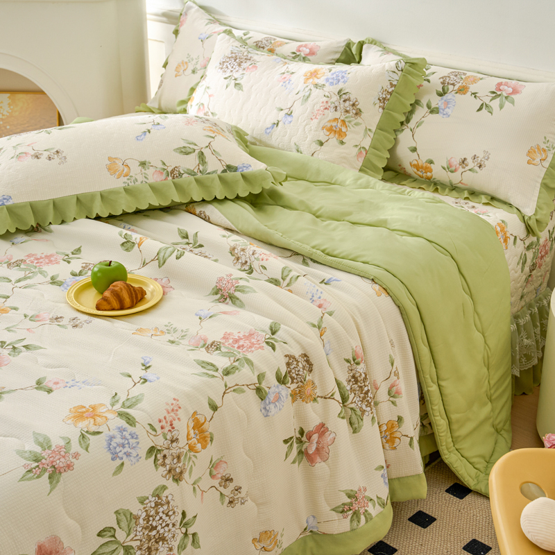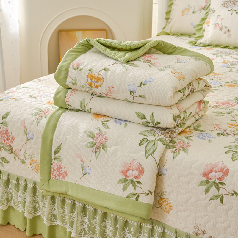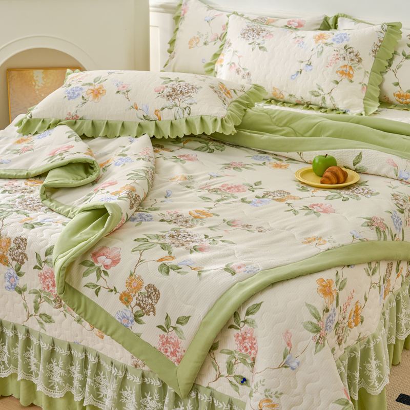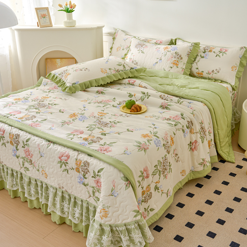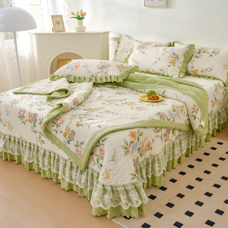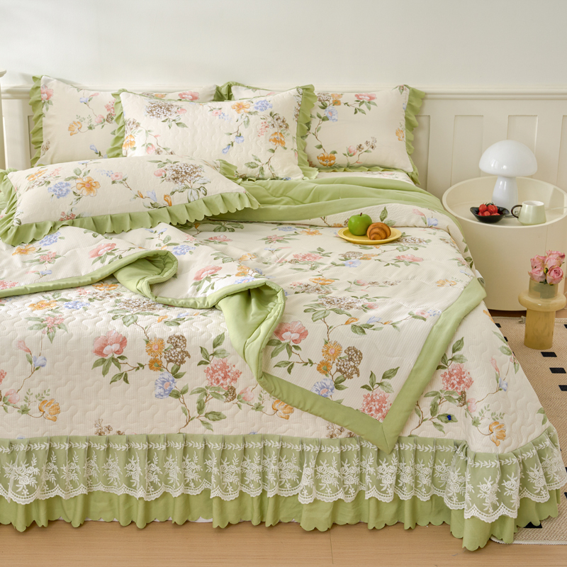 美莱家纺 2024新款软糯泡泡棉蕾丝床盖床盖四件套单品系列-床盖夏被四件套 俏佳人