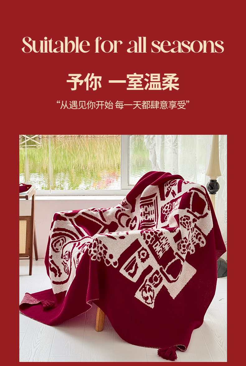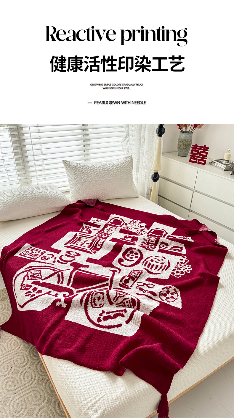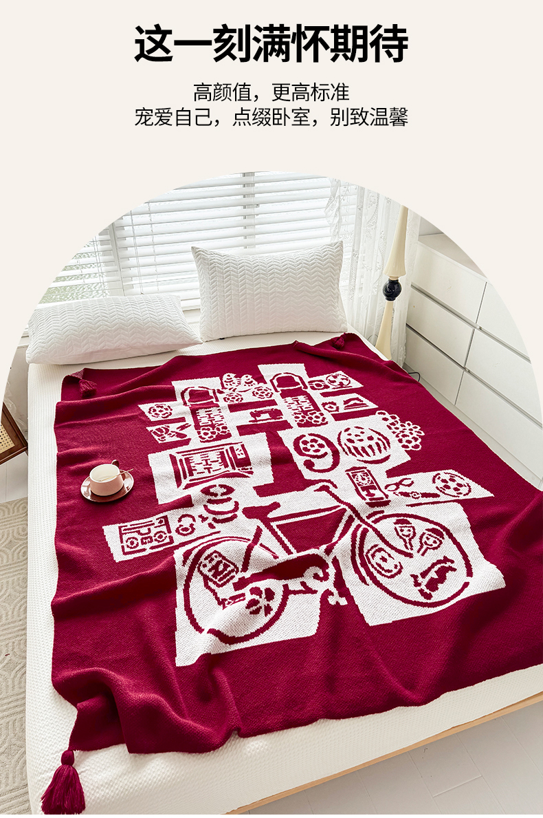 当前位置: 91家纺网 > 商品网购 > 毛毯休闲毯绒毯 > 针织毯 > 苏艺针织盖毯 2024新款中式风高端婚礼喜字毛毯 针织喜-复古喜字盖毯