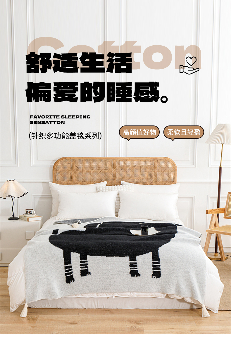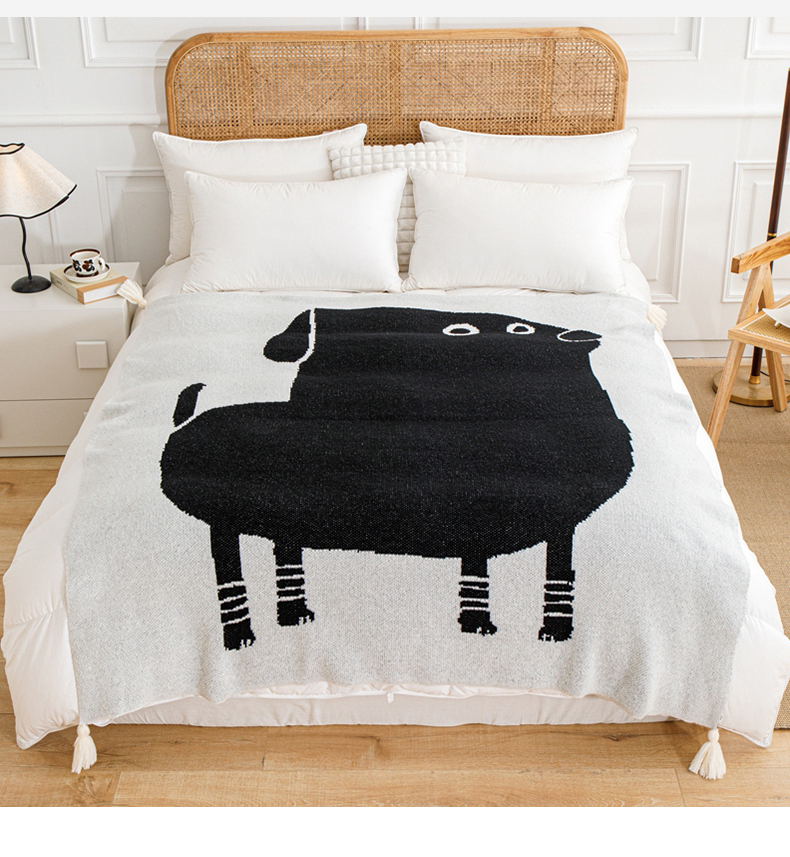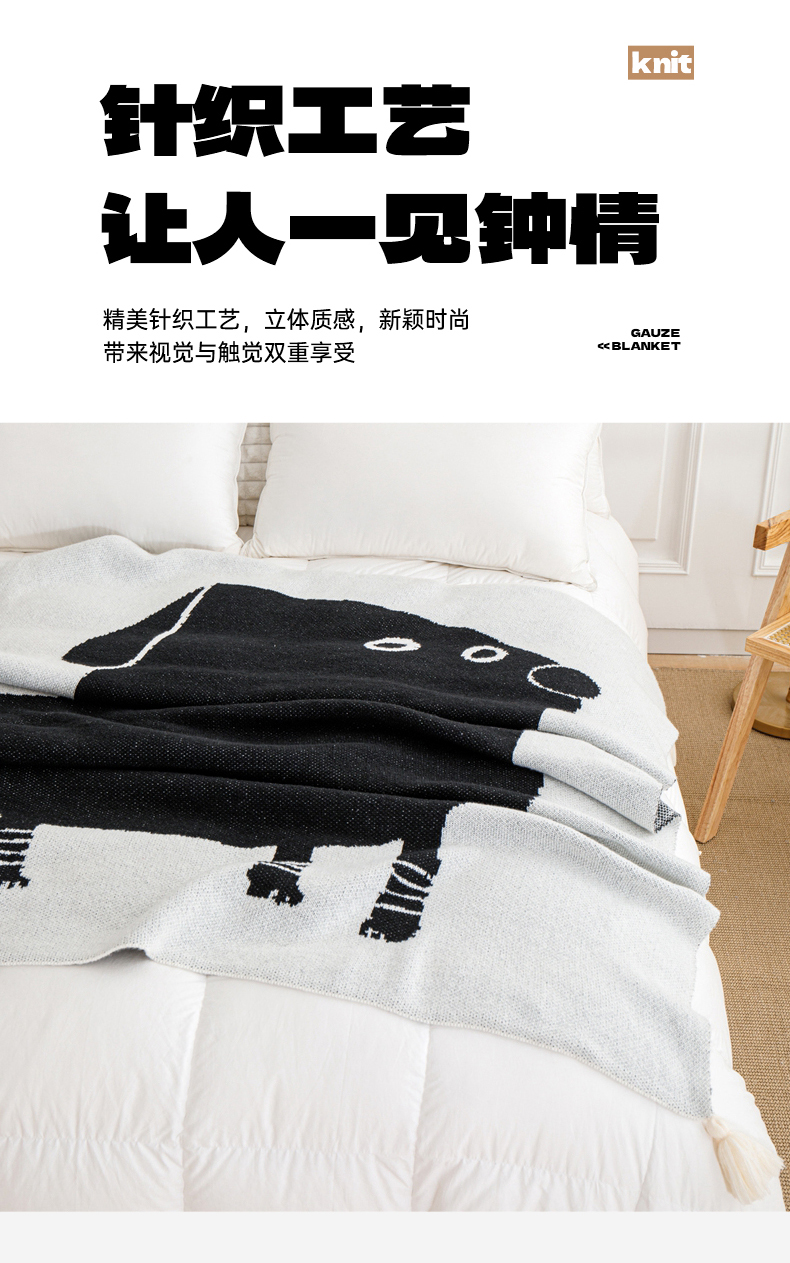商品名称:苏艺针织盖毯 2024新款针织披肩沙发盖毯 针织-插画狗