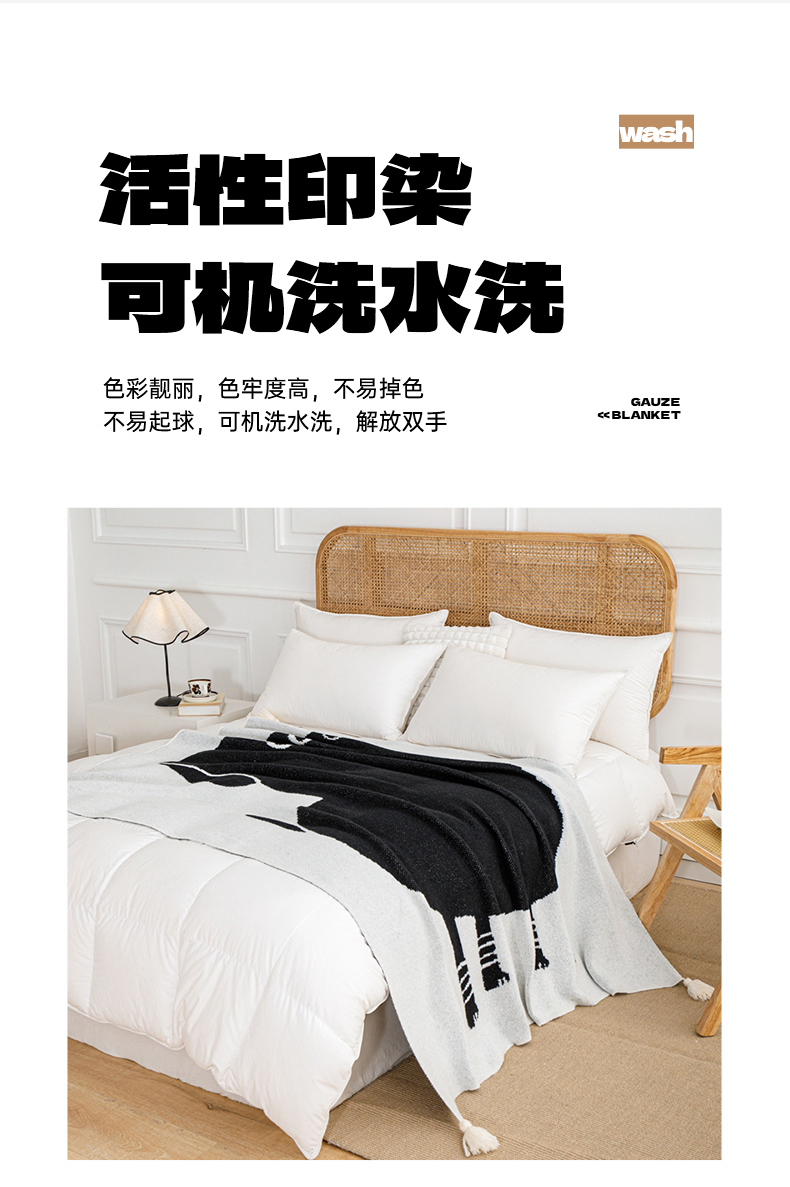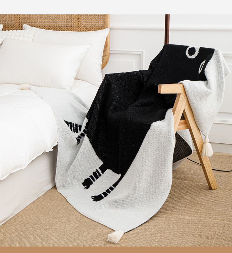 (总)苏艺针织盖毯 2024新款针织斑马纹半边绒毛毯,白咖斑马纹,黑白斑马纹,黑咖斑马纹