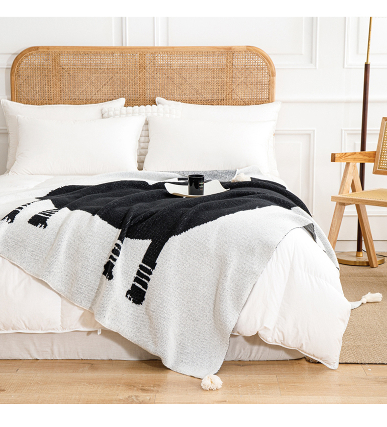苏艺针织盖毯 2024新款针织披肩沙发盖毯 针织-插画狗
