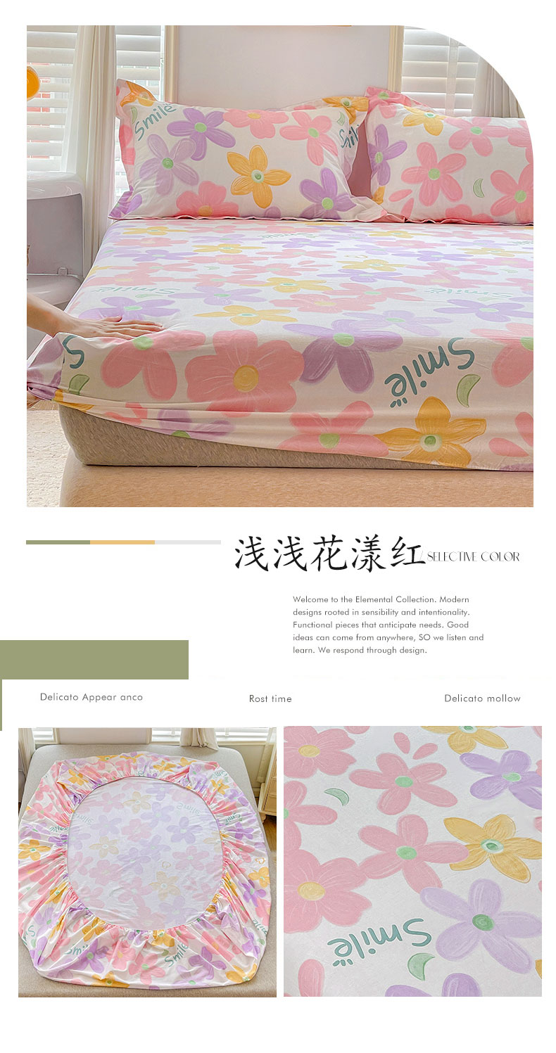 商品名称:恩泽 2024新款ins风全棉单品床笠 浅浅花漾粉
