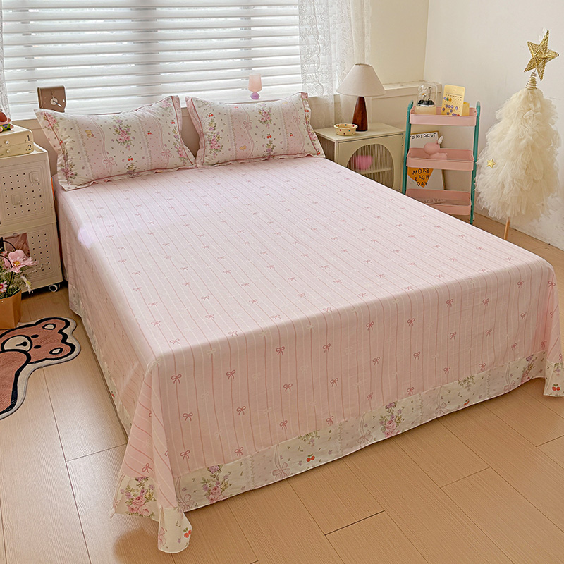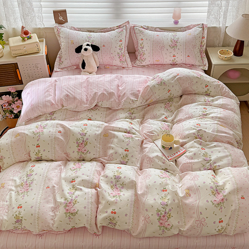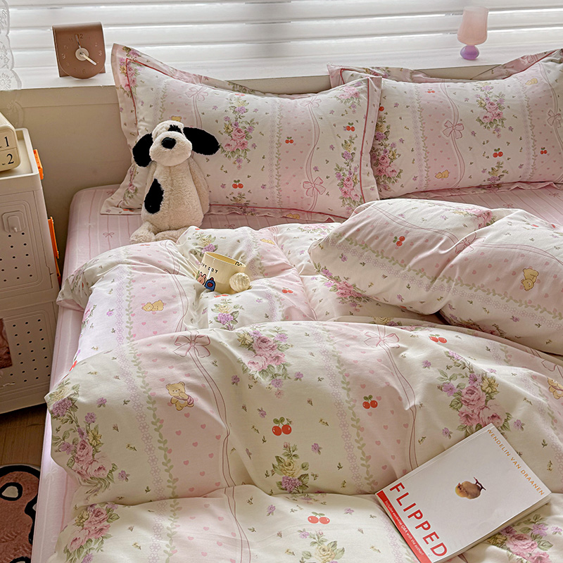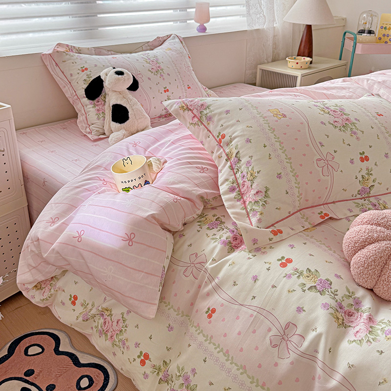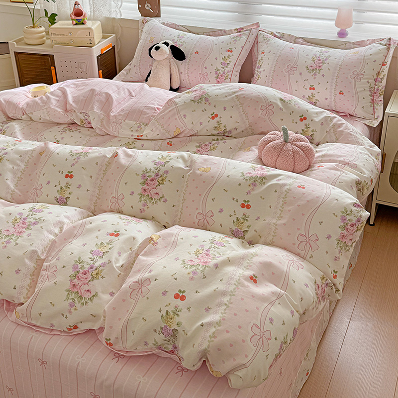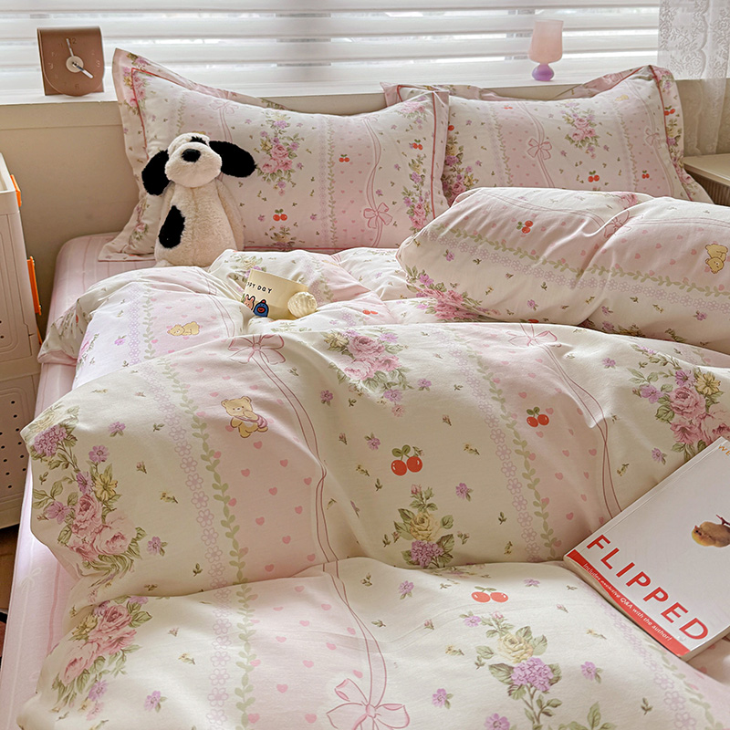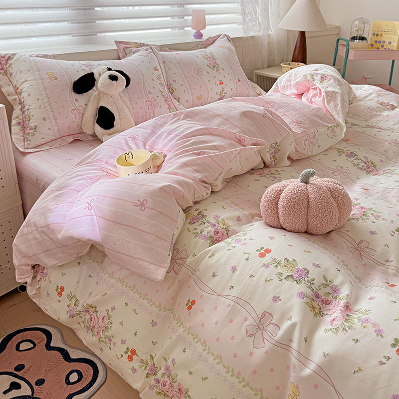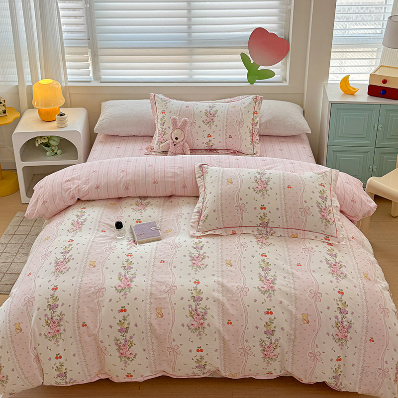 乐童 2024新款直播爆款13070纯棉印花吊边款一字绣四件套第八波少女心结
