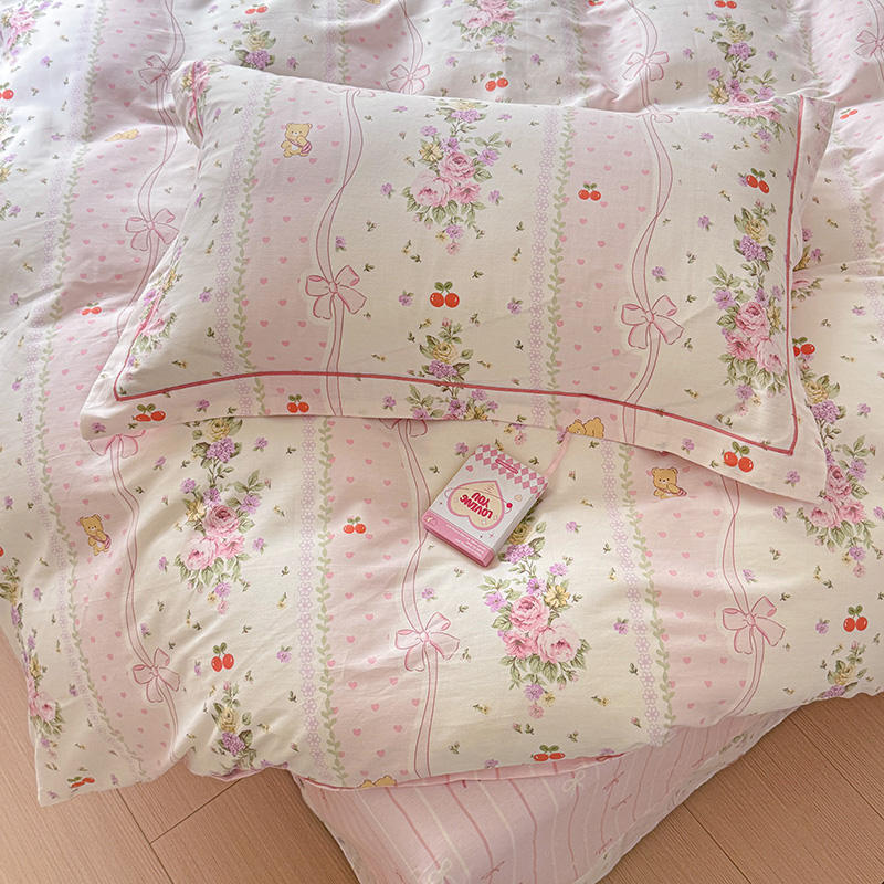 2024新款13372纯棉大版印+绣小清新款四件套 草莓之恋,草莓之恋