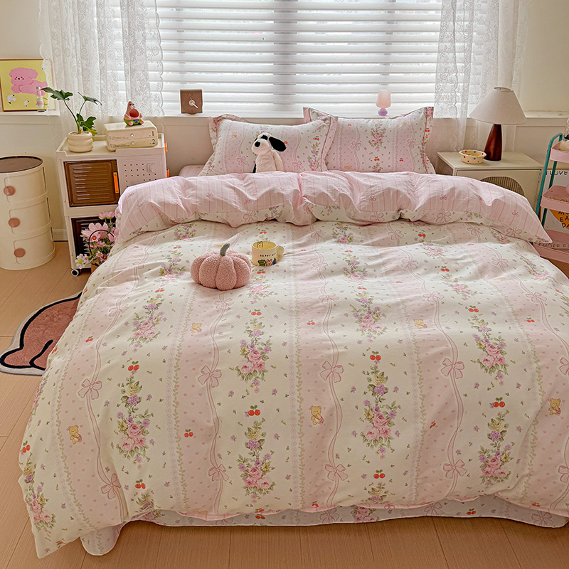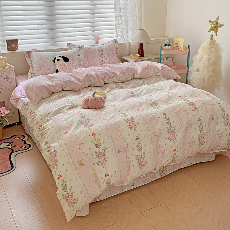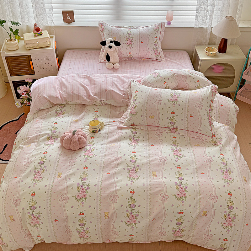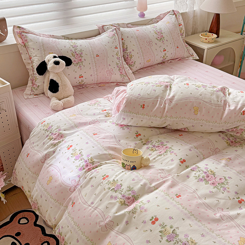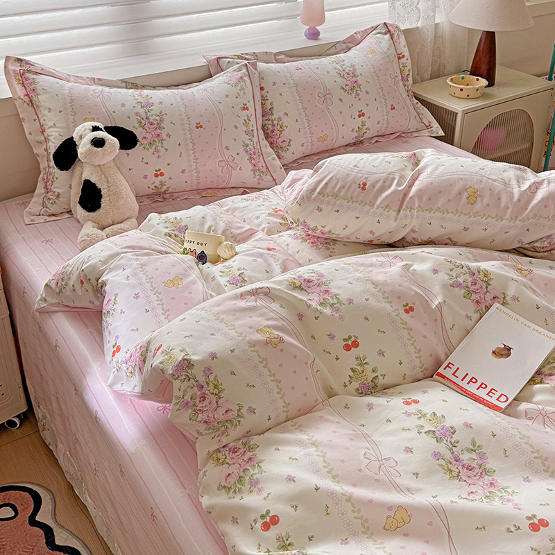 商品名称:乐童 2024新款直播爆款13070纯棉印花吊边款一字绣四件套第八波少女心结